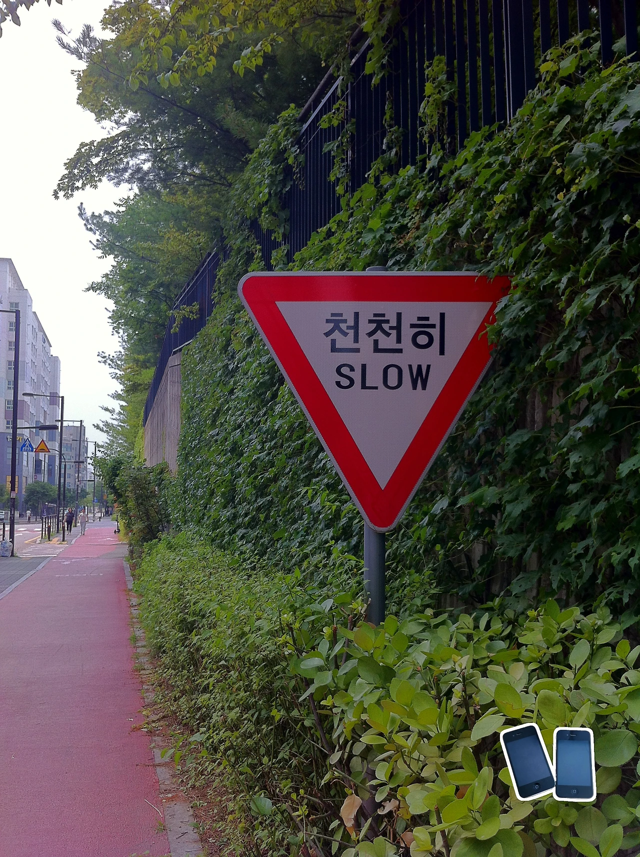 아들과 길을 걷다가 보이는 표지판을 찍어봤습니다. 아이폰4 화면이 작고 날이 맑은 탓에 액정이 잘 보이지 않아서찍기가 어려웠습니다.