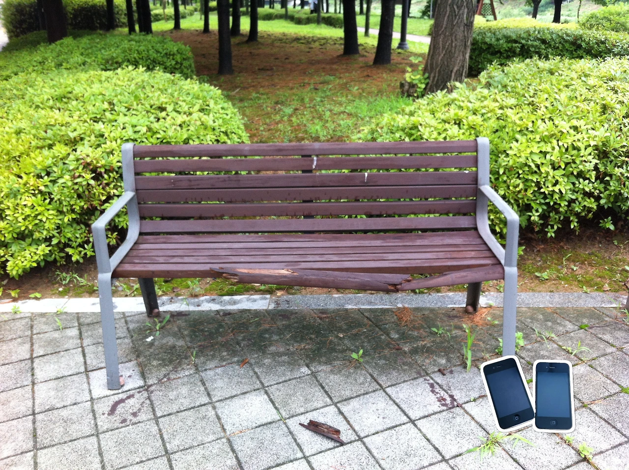 찍게 된 이유는 의자가 아무나 더 이상 앉지 못하게 망가져서입니다. 삐쭉하게 부러진 방부목들은 더 이상 아무도 앉을 수 없음을 공표하고 있었습니다.