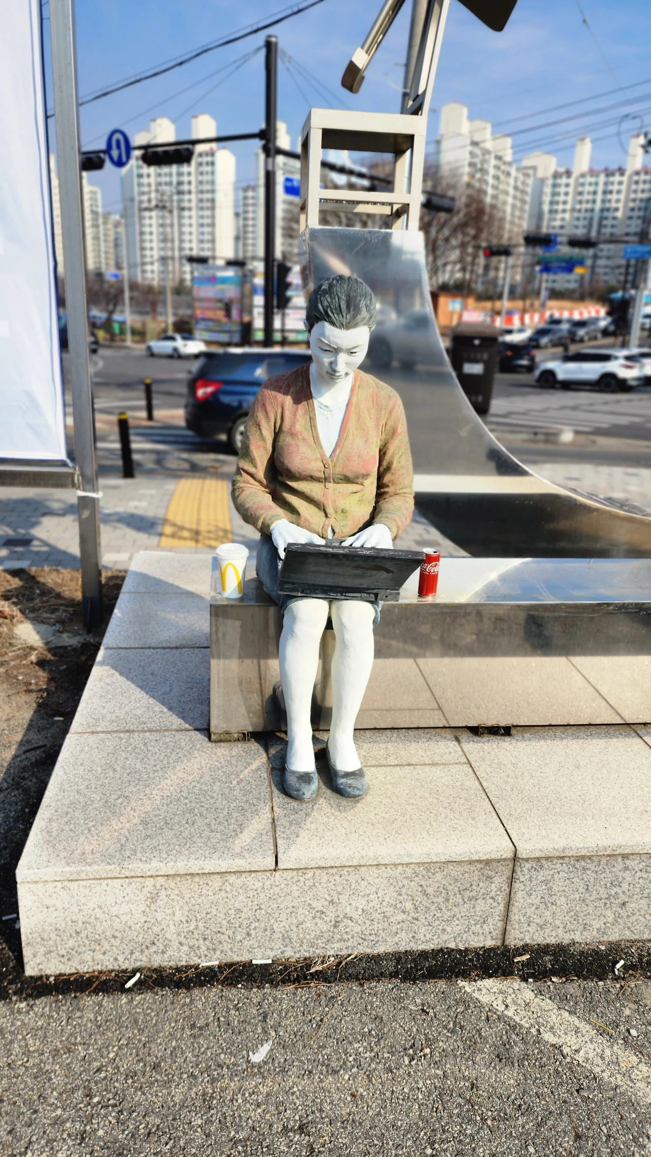 그런 느낌으로 지나가는 사람들이 '이야기 이어 쓰기'하듯이 쓰레기를 버려두고 갔습니다. 조형물의 노트북도 그 옛날 쓰던 노트북 모양이라서 정겹기도 했습니다.