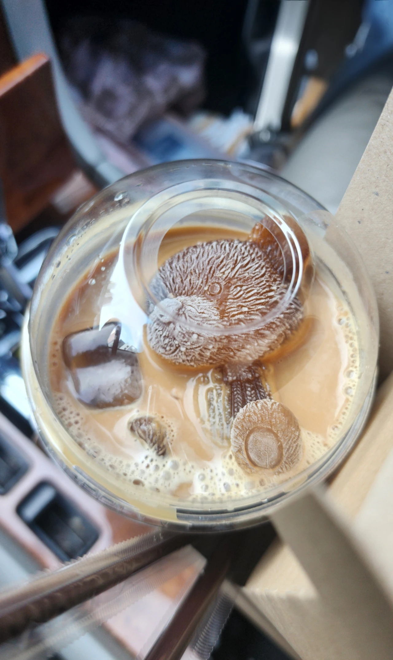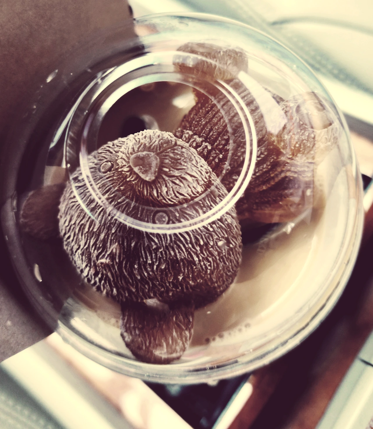 커피 속에 곰돌이 얼음이 너무 귀엽고 곰돌이가 살아있는 듯한 느낌 덕분인지 한동안 커피를 먹지 않고 대화했습니다. 진짜 새끼 곰돌이가 물 위에 누워있는 것 같았습니다. 대화하는동안 곰돌이가 천천히 커피 속으로 녹아들고 있었습니다.