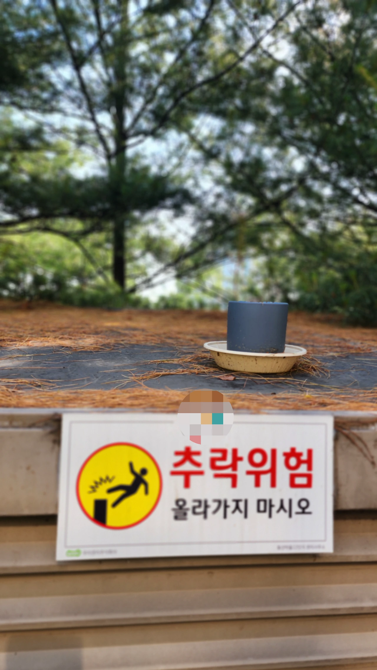 당부의 글을 보다가 사진을 찍은 이유는 '올라가지 마세요.'라는 느낌보다는 그 자리에 있는 '화분'에 눈이 갔습니다. 추락위험이 있으니 '섣불리 내려오려고 하지 마세요!' '조심하세요.'라고 알려주는 친절한 사람이 화분에게 당부하는 것 같아서 웃었습니다.