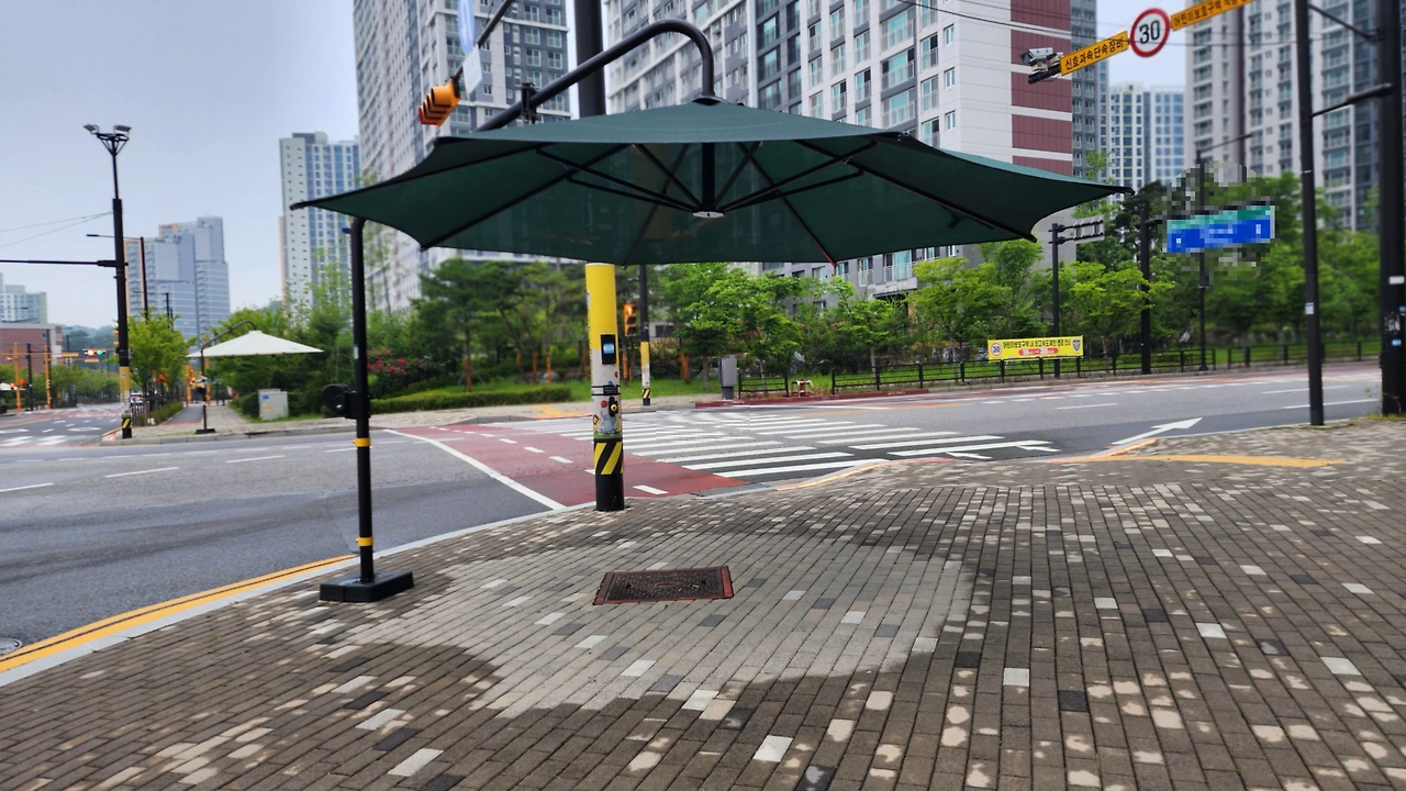 비가 오는 날 우산을 쓰고 걷고 있다가 봤습니다. 버스를 타거나 횡단보도 걷기전 뜨거운 햇빛을 피하기위해 주로 서 있었는데요. 멀리서 보니까 완전히 신기했습니다.