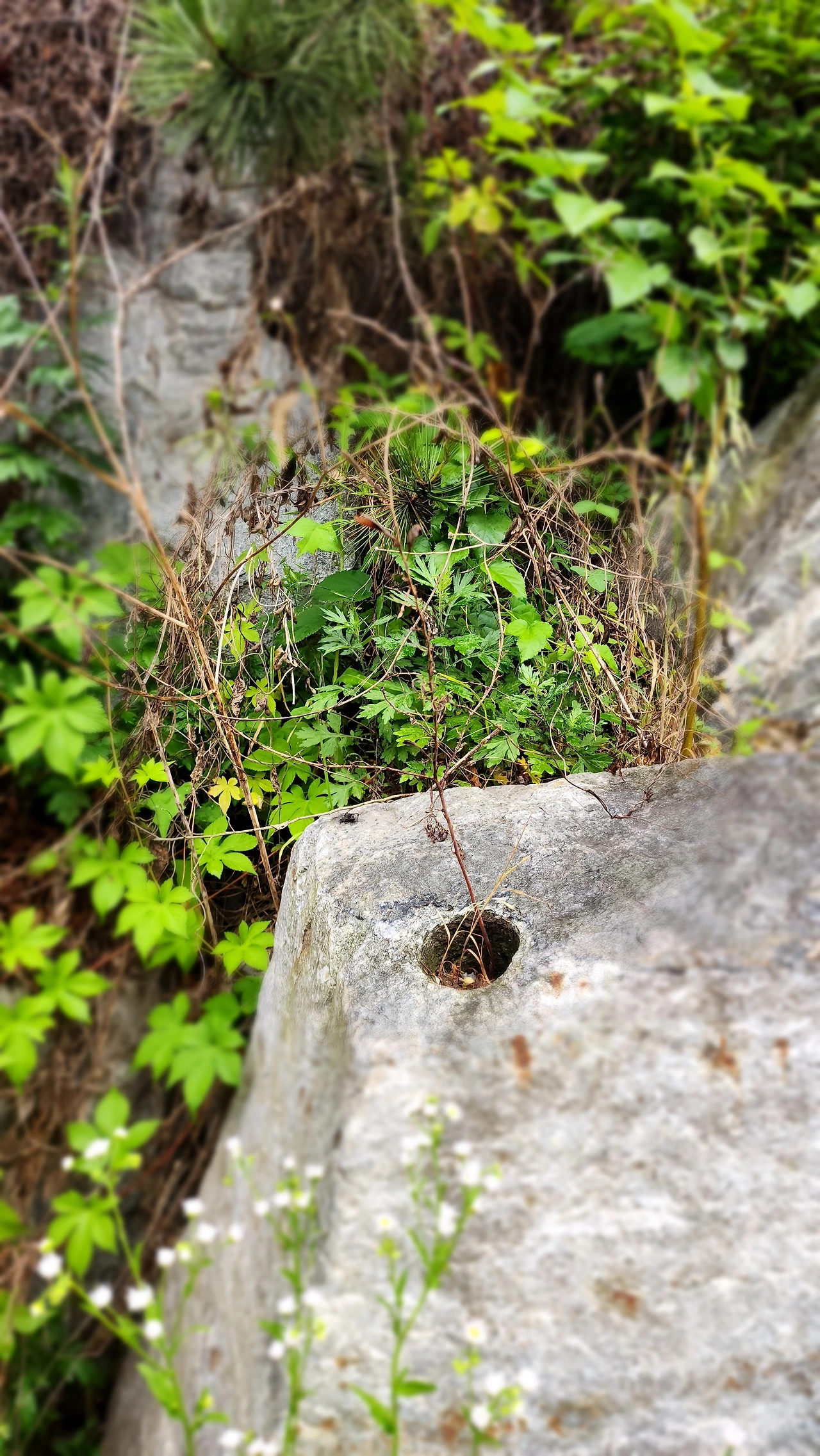뚫린 돌에 자리 잡은 풀뿌리인가? 혼자서 상상하면서 웃었습니다.