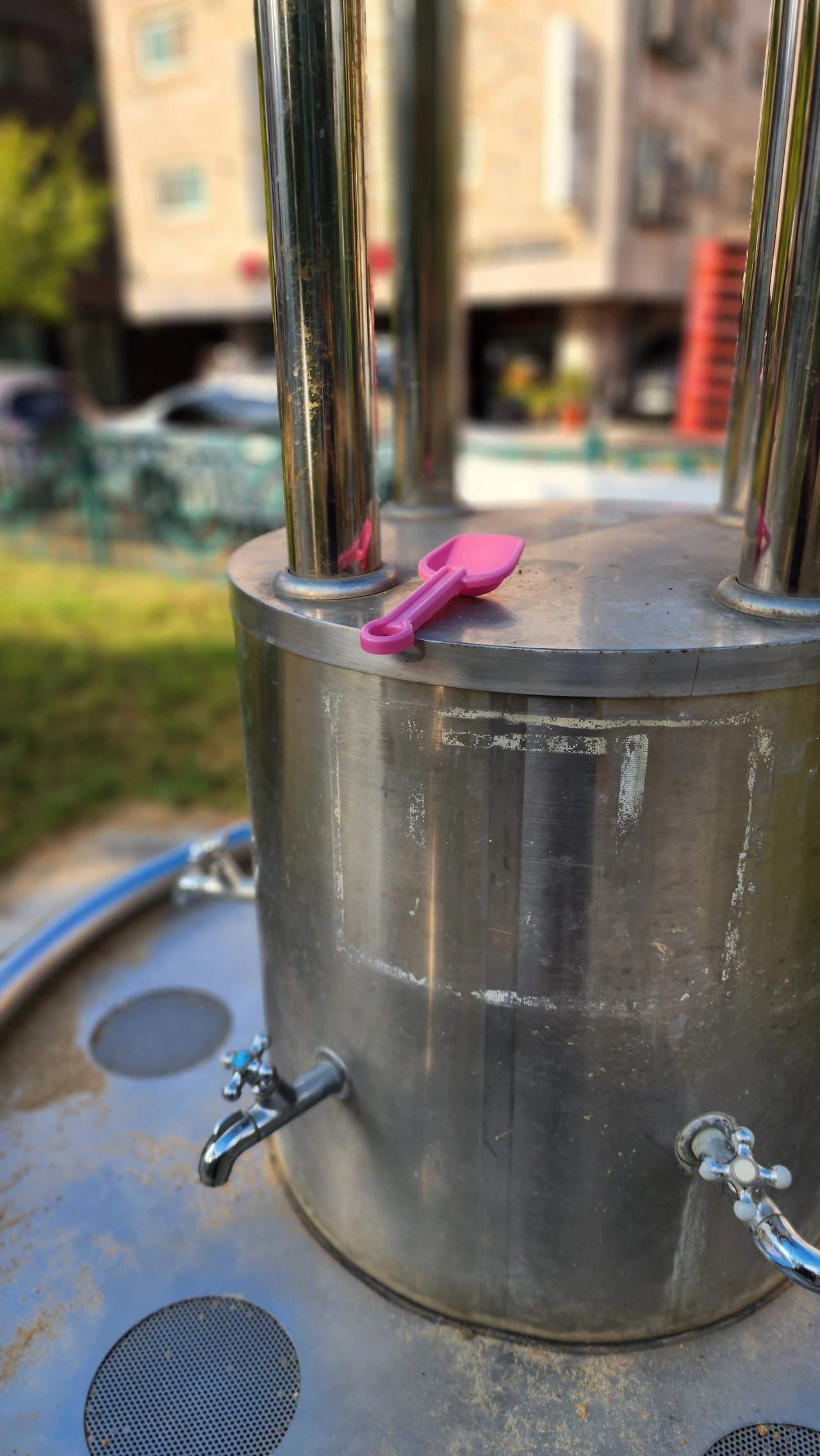 모래를 퍼서 노는 삽인지 식수대의 물을 떠 먹으라고 가져놓은 삽인지는 모릅니다.