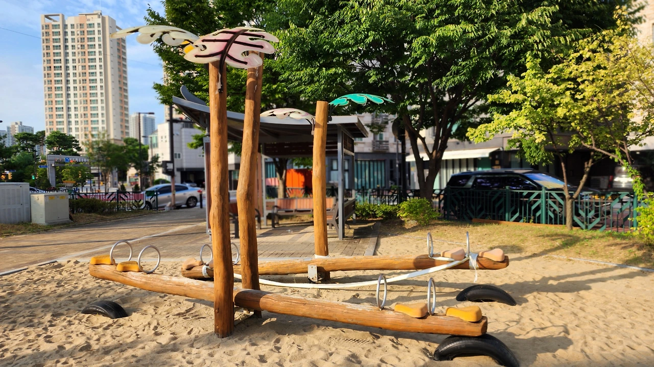 보통 나무모양으로 만든 시멘트 기둥이나 스틸로 만든 놀이터가 요즘 일반적인데 진짜 나무로 만든 것이라서 너무 반가웠습니다. 어릴때는 여차하면 보였던 손맛이 들어간 놀이기구들이었었습니다.