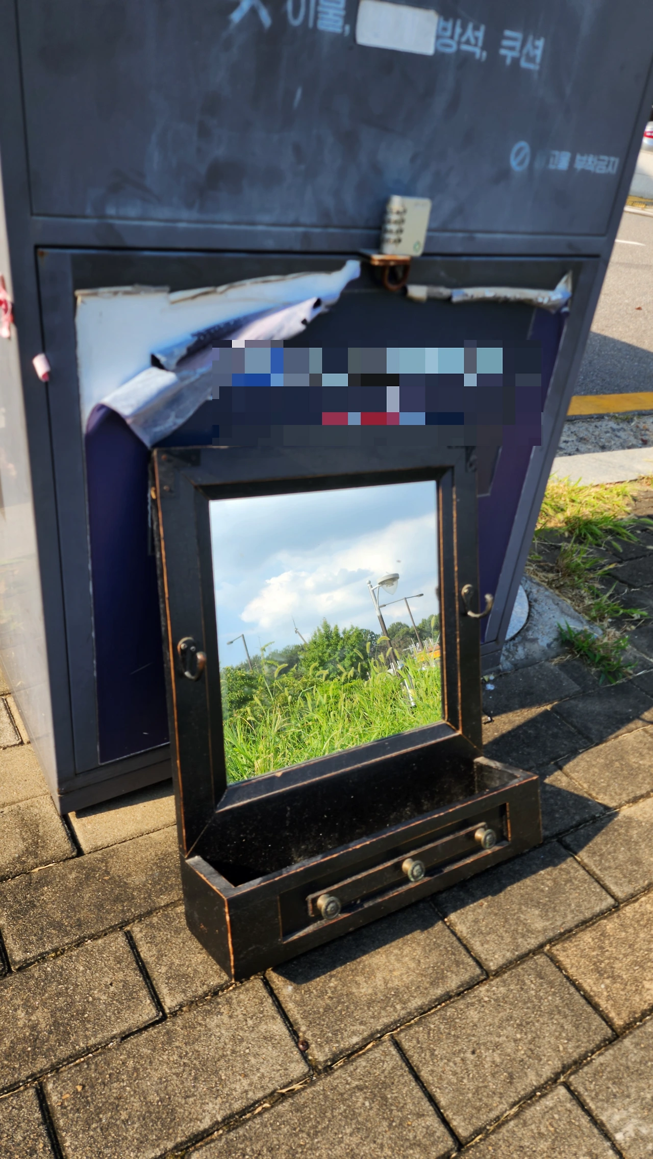 버려진 것들을 받아주는 의류함과 버려진 화장대 거울이 품고 있는 반대편 자연의 아름다움을 느끼면서 얼른 사진을 찍었습니다. 찍고나서 한동안 서서 감상했습니다. 의도하지 않은 아름다운 깨알에 행복했고요. 이 깨알도 제가 아끼고 있다가 나누고 싶을때 꺼내려고 품고 있던 '깨알'입니다.