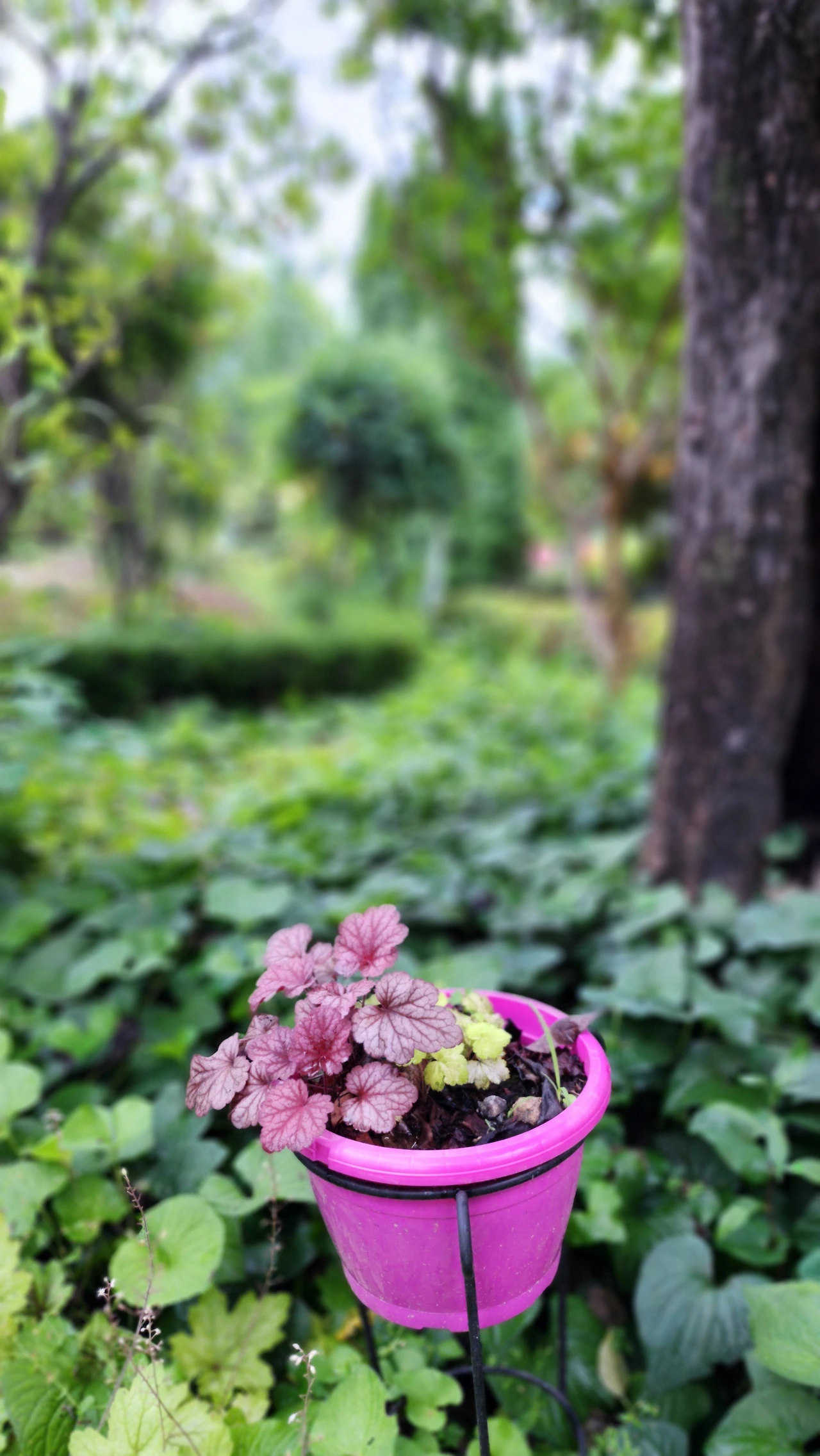 나무와 그 곁의 다양한 화분들 사이에서 '돋보이는 핑키 화분'이 눈에 들어와서 얼른 찍었습니다.