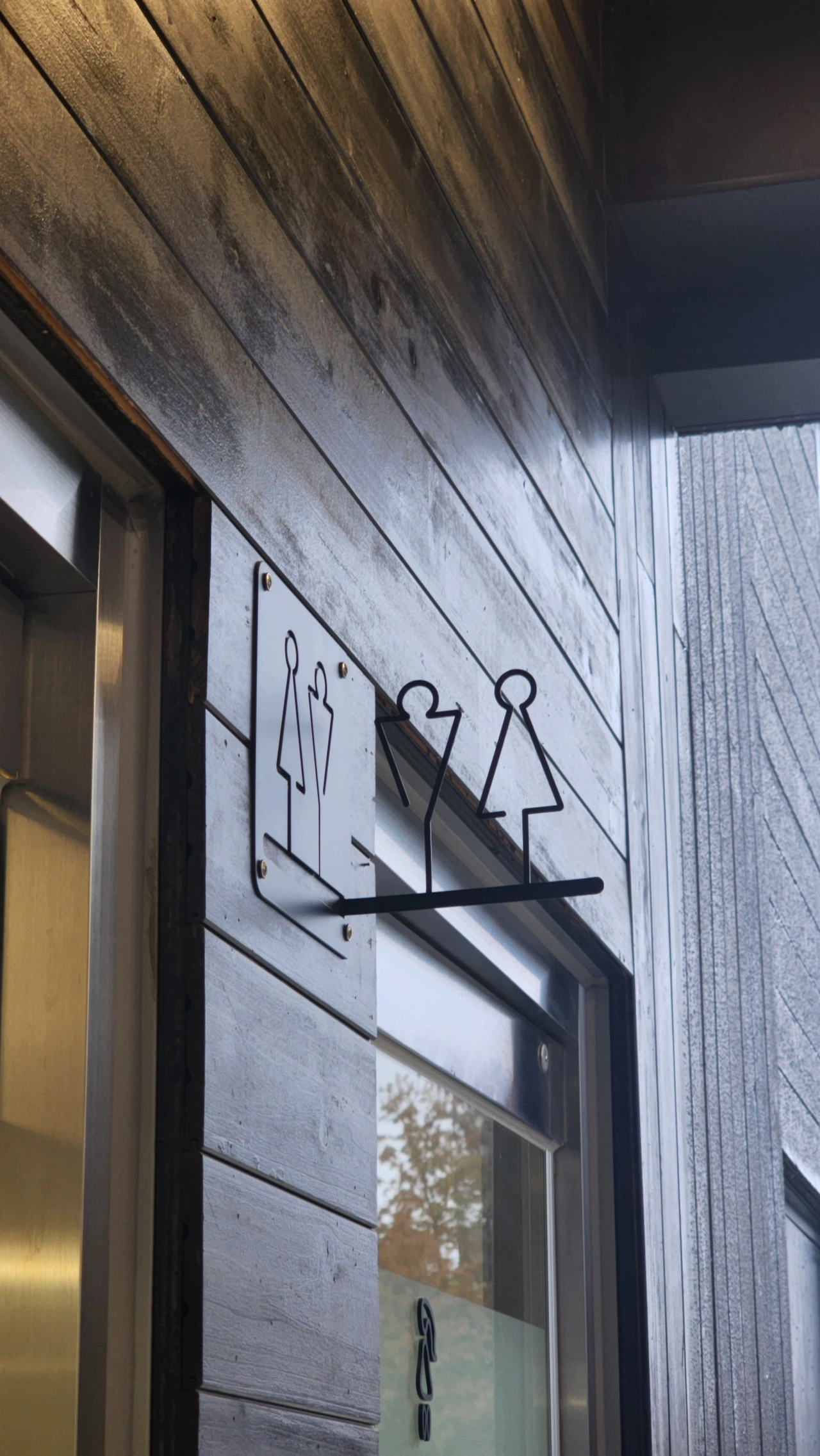 급한 화장실용무를 처리하기 위해서 비를 맞으며 들어가려다가 문득 드는 생각이 있어서 사진을 찍었습니다. 남녀 화장실 구분을 알리는 사인이 속이 투명한 스틸 프레임이었습니다. 디자인이 심플하면서도 본연의 목적에 충실해서 좋았던 것도 있지만 제게는 다른 생각이 들었습니다.