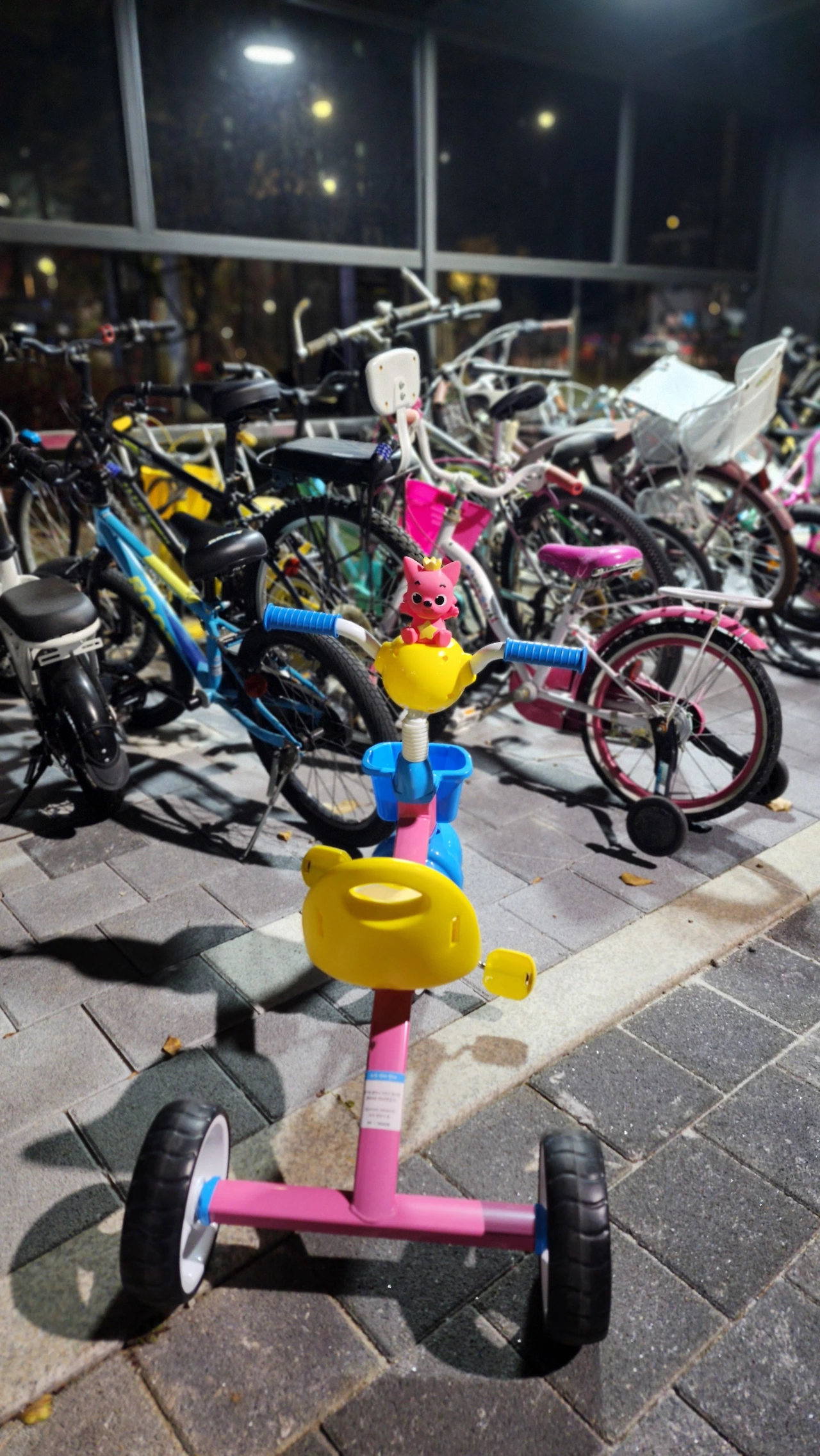 늦은 저녁 눈 똥그랗게 뜨고 손을 들고 있는 어린이 자전거위의 인형을 보면서 핑크퐁이 생각났습니다. 아는 분이 그것을 개발한 분을 아신다는데 엄청 부러웠습니다. 그러면서 은근 불평도 했습니다. '왜 나는 대박 나서 돈을 넉넉히 벌 재능은 없을까...'라면서 요. 그런 자책은 뒤로하고 아직은 아이들 덕분에 '동심'을 알아주는 제 마음이 남아있음이 감사했습니다.