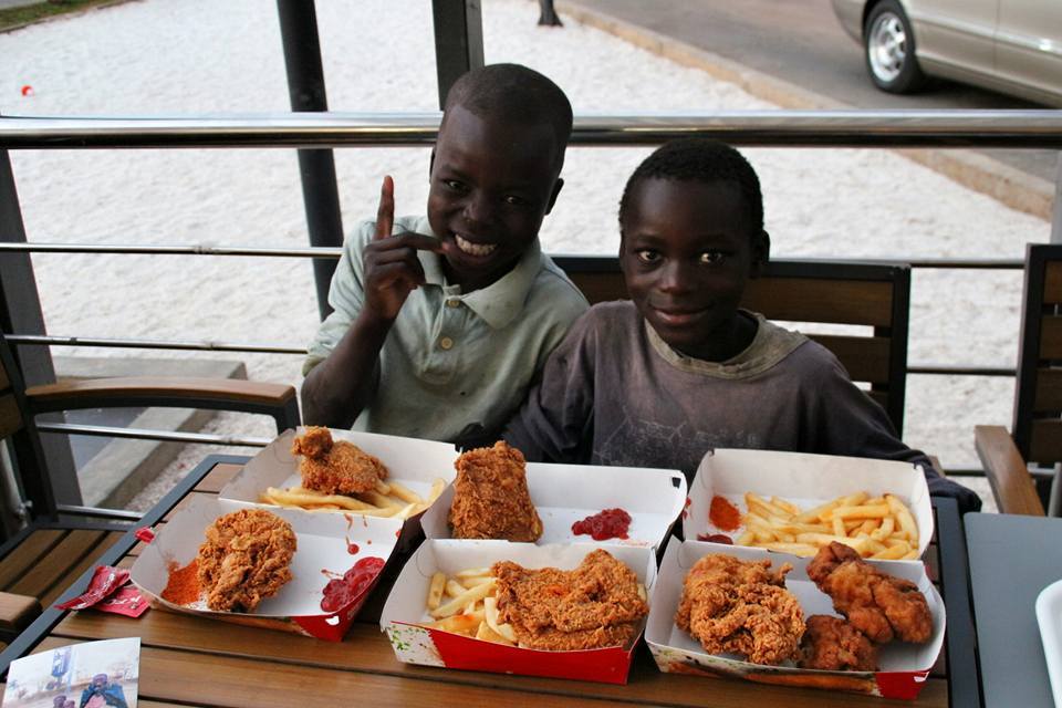 Kfc 안에는 아이들의 또래가 많았다. 각자의 부모님과 함께 닭다리를 뜯고 있었다. 외국인이 Homeless인 아이들과 함께 앉아있으니 안에 있던 모든 사람들의 시선이 우리에게로 향했다. 치킨이 나왔고 아이들은 치킨을 멀뚱멀뚱 보고만 있었다. 진짜 먹어도 되냐는 듯이. 나는 얼른 먹으라고 했고 아이들은 꼬질꼬질한 손으로 먹기 시작했다. 아이들의 이름은 조셉과 지악이었다.