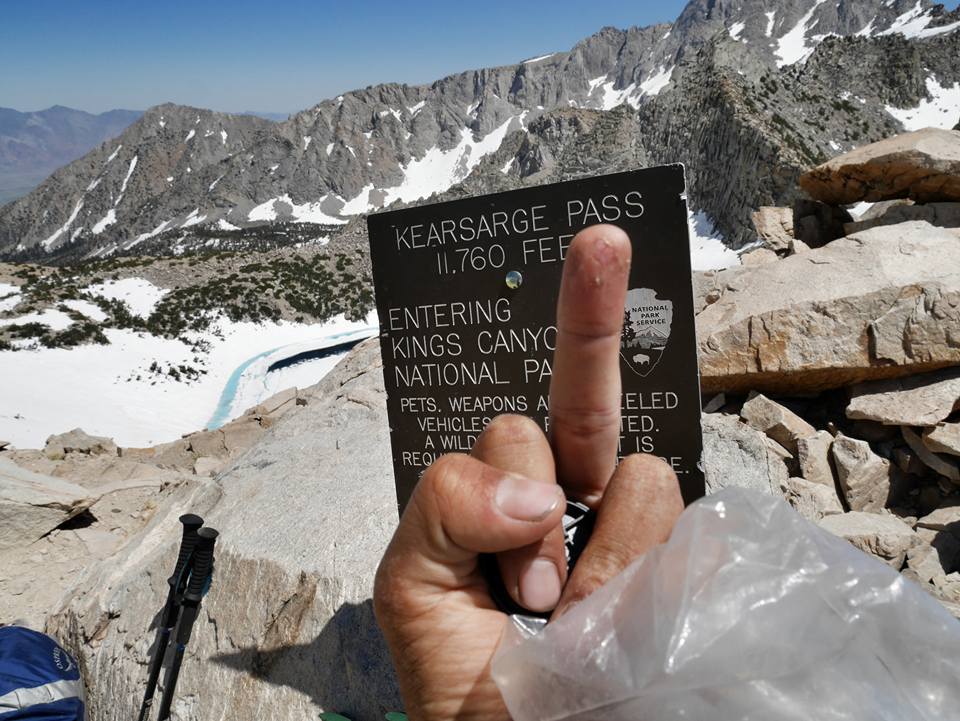 드디어 Kearsarge pass를 찾았다. 이제 하산하기만 하면 마을로 빠져나갈 수가 있었다. 그렇게 고대하고 고대하던 마을이라니. 문명세계가 너무나 그리웠다. 패스를 넘을 때 우리를 이렇게 개고생 시킨 패스에게 엿을 주었다. 지금 생각하니 미안한 마음이 조금 들지만, 당시에는 정말이지.... 얼마나 고생했으면 산에게 엿을 먹이겠나. 내 마음을 십분 이해해주시길.