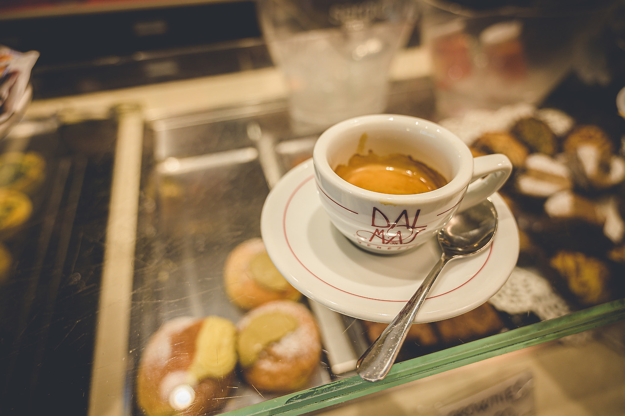 달마스라는 커피숍인데 여긴 좌석이 없습니다. 그냥 서서 시킨 거 먹고 나가면 됩니다. 이탈리아에서는 에스프레소를 또 먹어야 된다고 해서 에스프레소 한잔을 시켰어요.
