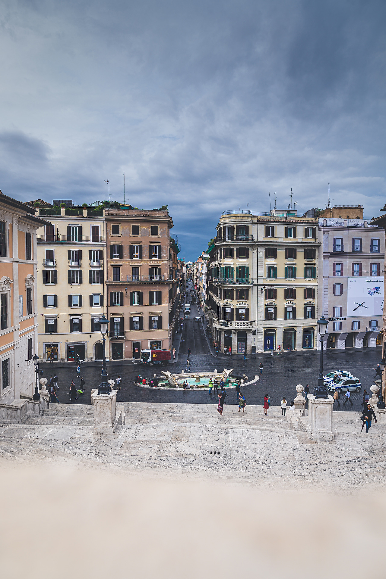 스페인 계단은 Spagna역에 내려서 Spagna방향으로 나가면 됩니다. 출구에서 나오면 왼쪽에 분수가 있고 그 앞에 계단이 있습니다. 아침 일찍 도착하니 사람도 별로 없고 굉장히 쾌적합니다. 이렇게 사람이 별로 없으면, 소매치기들도 눈에 잘 띄어서 활동을 잘하지 않는다고 하는군요. 여행지에서 포인트를 이렇게 여유롭게 관람하는 게 좋긴 한데, 이상하게 사람이 별로 없으니 감흥은 좀 떨어지는 것 같기도 하고, 기분이 묘합니다.
