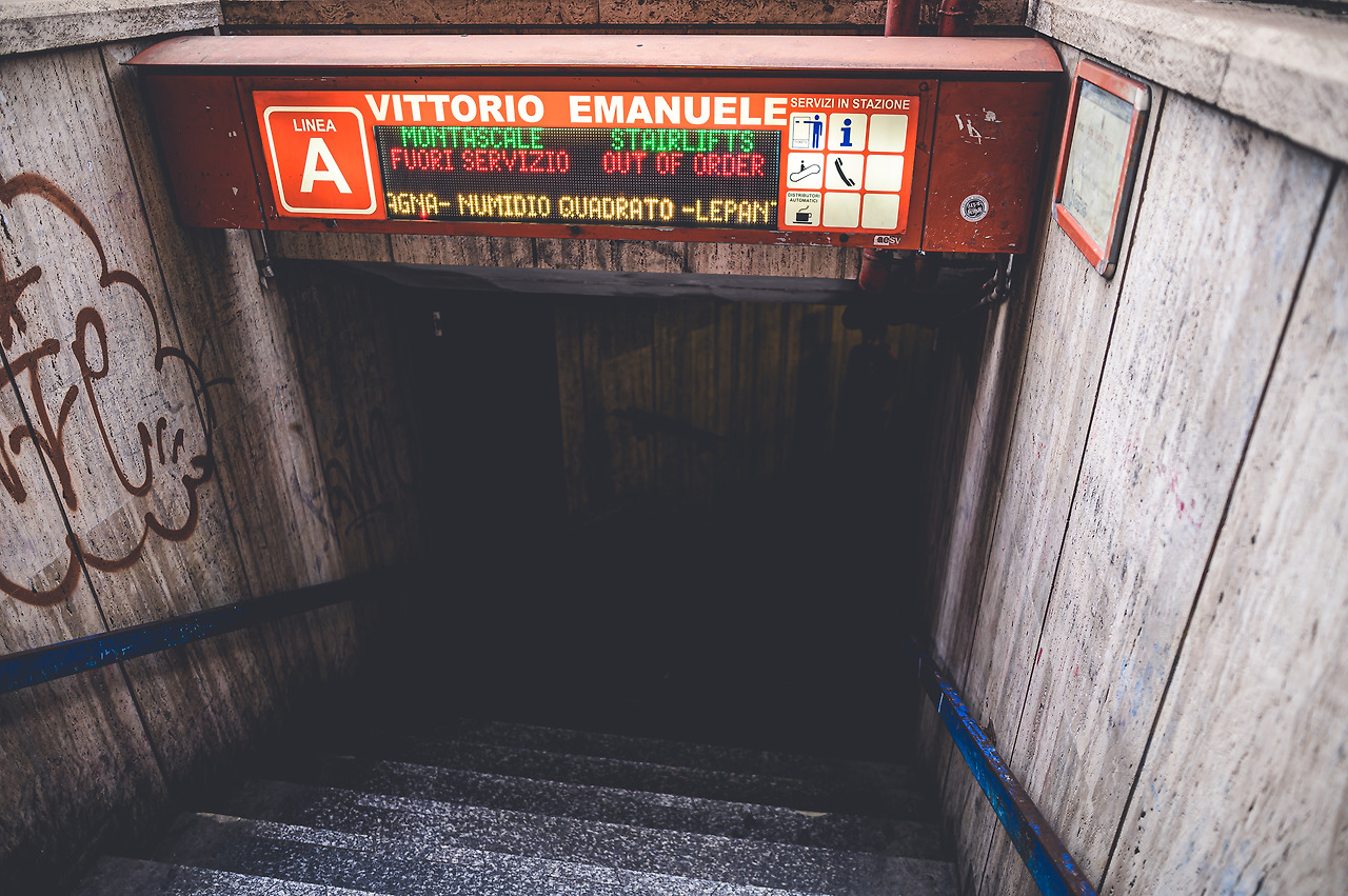 이탈리아 와서 지하철은 처음으로 타 봅니다. 사진으로 보듯이 약간 좀 어둑어둑하고 무섭게 생겼습니다. 들어가면 역시나 어둠 컴컴하고 우리나라 지하철처럼 막 밝은 분위기가 아니라 정말 땅 밑임을 알려줍니다.