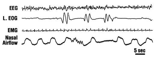 첫 번째 실험이 REMP에서 움직일 수 있는 유이한 근육 중 하나인 안구근육과 관련되어 있다면 라버지의 두 번째 실험은 호흡근육과 관련되어 있다. 다음의 자료를 보자.