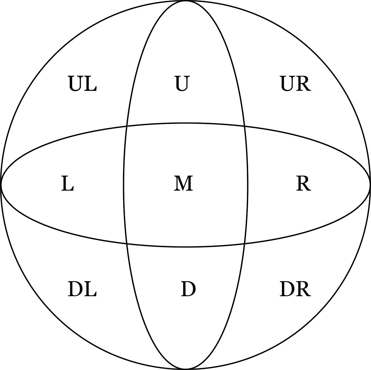 그렇다면 이 한계는 어떻게 극복될 수 있는가? 나는 두 가지 방법을 제안하고자 한다. 그것은 (1) 신호체계에 사용되는 안구운동의 다양성을 확보함으로서 꿈의 세계에서 현실세계로 보낼 수 있는 신호의 범위를 최대한으로 확장시키는 것이고, (2) 신호체계의 복잡성은 (1)을 통해 강화될 것이므로 PSG를 업그레이드해서 LOC와 ROC의 안구운동 추적범위, 혹은 추적시야를 넓히는 것이다. 즉 (1)은 드리머(피실험자)가 꿈의 세계에서 현실세계로 보내는 송신방법강화에 해당하고 (2)는 현실세계에서 대기하고 있는 실험자가 그 신호를 받고 정확히 분석하는 과정에 대한 강화에 해당한다. (1)에 대해 생각해보자. 안구는 왼쪽과 오른쪽은 물론 위아래와 대각선으로도 움직일 수 있으며 이를 통해 다양한 패턴을 만드는 것이 가능하다. 이 방법을 사용한다면 요컨대 대단히 정교하고 복잡한 신호체계를 만드는 것이 가능해진다. 오른쪽을 R, 왼쪽을 L, 아래쪽을 D, 그리고 위를 U로 표현하고 중앙을 M으로 표현해보자면 우리는 드리머의 시야에서 다음과 같은 아홉 개의 포인트를 찾을 수 있다.