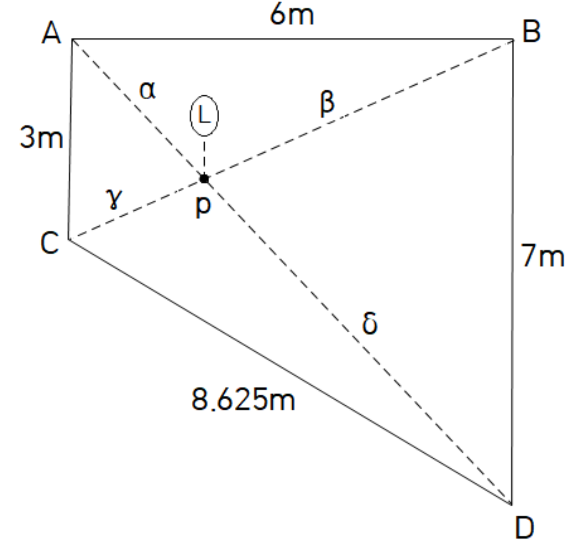 Figure 1에서 포인트 A, B, C, D는 각각 관측자 A, 관측자 B, 관측자 C, 그리고 관측자 D를 의미한다. L은 불빛, p는 불빛 아래에 놓여있는 임의의 대상을 의미한다. 이때 불을 켠다면 그 불은 대상 p를 반사한 후 각자 α→A, β→B, γ→C, δ→D의 경로를 통해 관측자에게 도달할 것이다. 대상 p로부터 관측자까지의 거리는 δ>β>α>γ의 순으로 하락한다. 대상으로 부터의 거리가 멀어질수록 빛이 관측자에 도달하는 기간은 더 오래 걸리므로 멀리 떨어져있는 관측자일수록 상대적으로 더 오래된 과거의 감각소여를 갖게 된다. 즉 대상 p를 반사한 빛은 γ-α-β-δ의 순으로 관측자에게 도착한다. 따라서 관측자 C는 그 누구보다도 빠르게 대상 p를 지각할 것이고 관측자 D는 가장 늦게 대상 p를 지각할 것이므로 이들은 상대적으로 과거 혹은 미래의 감각소여를 얻을 수 있다. 이번엔 이를 좀 더 일반화해서 생각해보자.