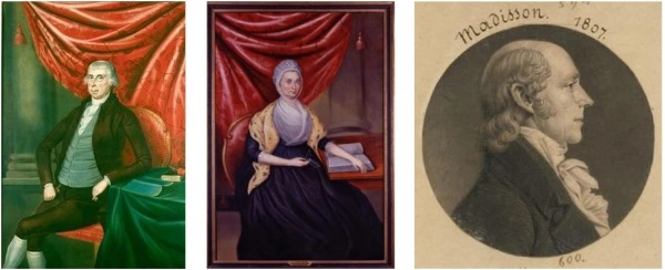 [해월] 제임스 시니어는 1749년 9월 13일 ‘킹 죠지 카운티’(King George County) ‘포트 칸웨이’(Port Conway)에서 농장을 운영하던 ‘후렌시스 칸웨이 시니어’(Francis Conway Sr.)의 딸 ‘엘러너 로즈 낼리 칸웨이’ (Eleanor Rose Nelly Conway. 1731.1.9 – 1829.2.11)와 결혼했는데, 그들은 우리의 주인공 ‘제임스 메디슨 주니어’(James Madison Jr. 1751-1836)를 장남으로 모두 12명의 자녀를 두었지. 그중에서 다섯 아이는 아주 어려서 사망했고 일곱 아이들만 성인으로 자라났는데, 제임스의 형제들은 ‘후렌시스 테일러’(Francis Taylor. 1753-1800), ‘엠브로스’(Ambrose. 1755-1793), ‘앨러너 칸웨이’(Eleanor Conway. 1760-1802), ‘윌리엄 테일러’ (William Taylor. 1762-1843), ‘세라 케트렛’(Sarah Catlett. 1764-1843), 그리고 ‘후렌시스 테일러’(Frances Taylor. 1774-1823) 등이 있어. 이 중에서 윌리엄 테일러 메디슨은 미국 독립전쟁 때 아버지와 함께 독립군 중장으로 참전했고 ‘1812년 전쟁’ 때에도 영국군과 싸운 장군이었지.