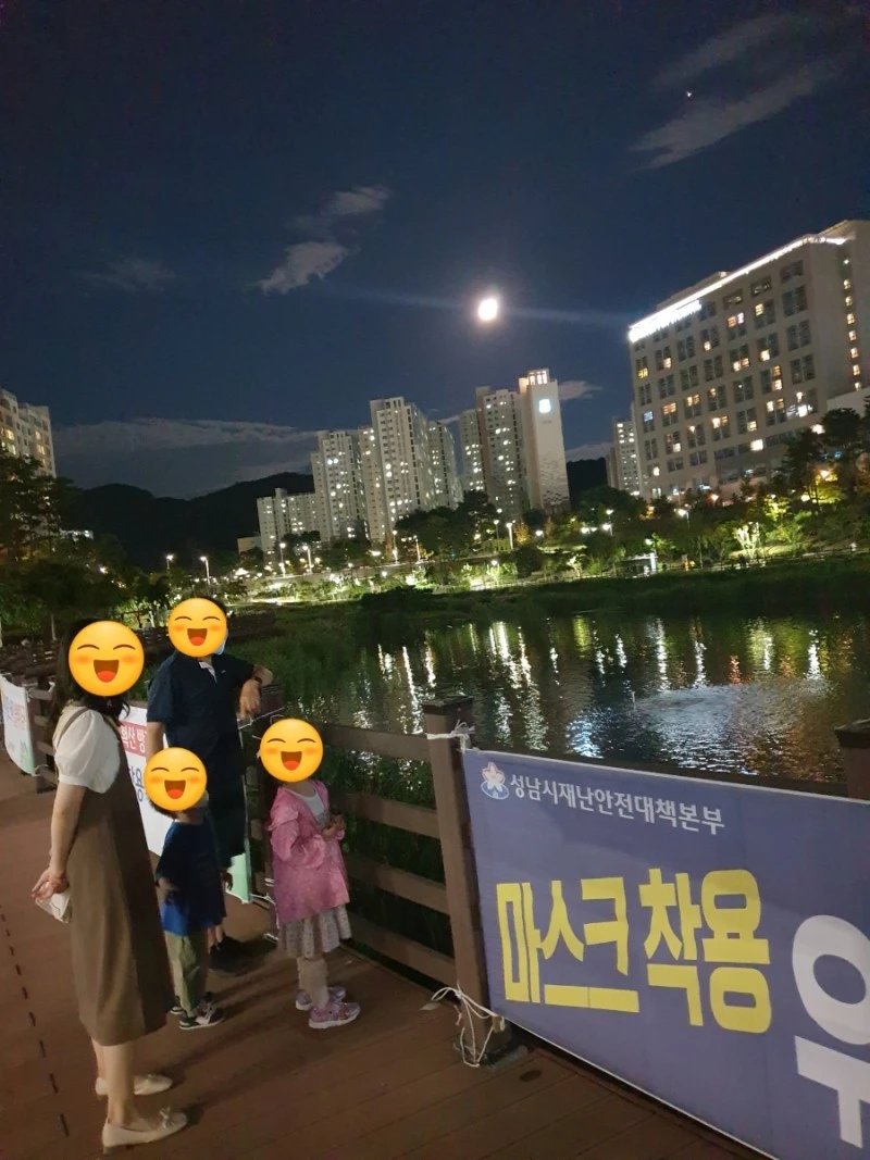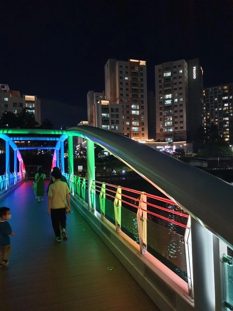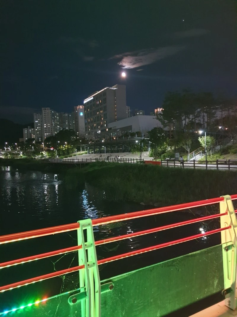 달을 보러 나왔으나 색깔이 변하는 다리를 더 좋아했다.