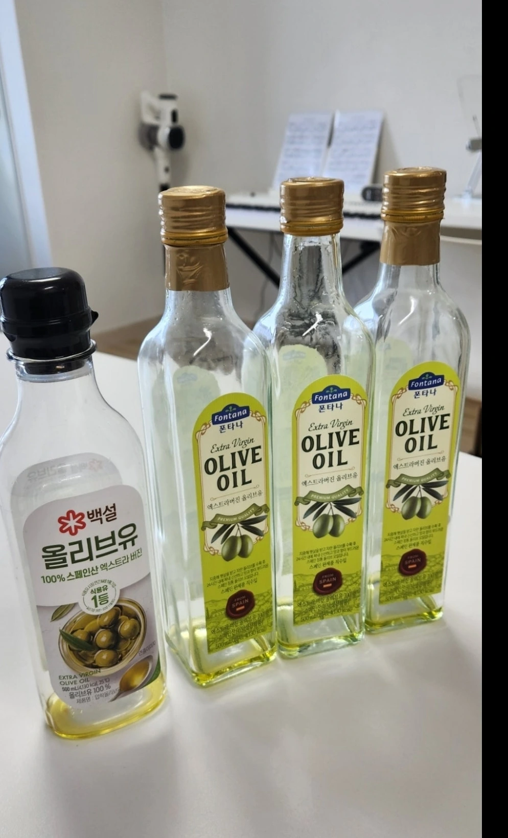 그렇게 소진(?)한 올리브유는 무려 4병을 넘어섰습니다. (뭔가 마신 술병 모아놓은 느낌..)