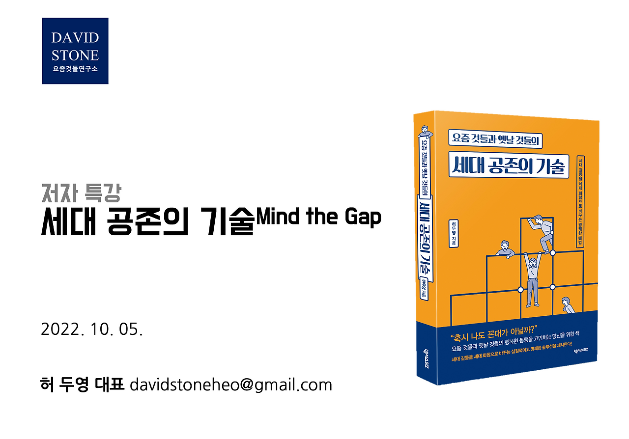 #세대특강 #세대강의 #세대교육 #세대워크숍 #대면세대특강 #비대면세대특강 #MZ세대특강 #밀레니얼세대특강 #Z세대특강 #세대공존 #세대공존의기술 #선배세대이해 #세대화합 #세대차이 #세대갈등 #낀세대 #X세대 #MZ세대이해 #세대소통 #세대간소통 #세대교육 #저자직강 #허두영작가 #세대분야전문가 #세대전문가 #세대분야최다강의 #세대분야최다출간 #세대강의문의
