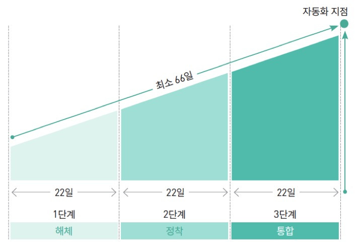 2009년 유럽 사회심리학 저널에 게재된 습관에 관한 연구에서는 어떤 행동이 습관이 되는 데 걸리는 시간은 평균적으로 66일이라고 보고되고 있다. 사람에 따라 편차가 큰데, 빠르면 18일, 늦으면 254일까지 소요된다. 로빈 샤피로는 런던대의 연구를 인용하면서 습관이 형성되는 과정을 해제, 정착, 통합의 3단계로 정리했다. 그렇다면 3개월 이상 지속하는 바이러스 팬데믹이 그동안의 오프라인 중심의 습관을 온라인 중심의 습관으로 바꿨으리라는 것은 어렵지 않게 짐작할 수 있다. 과거 오프라인 환경에 익숙했던 습관은 변화가 불가피한 상황이 된 것이다. 이젠 온라인·디지털 환경에 적합한 습관으로 바뀌지 않으면 더 적응하기 힘든 세상이다.