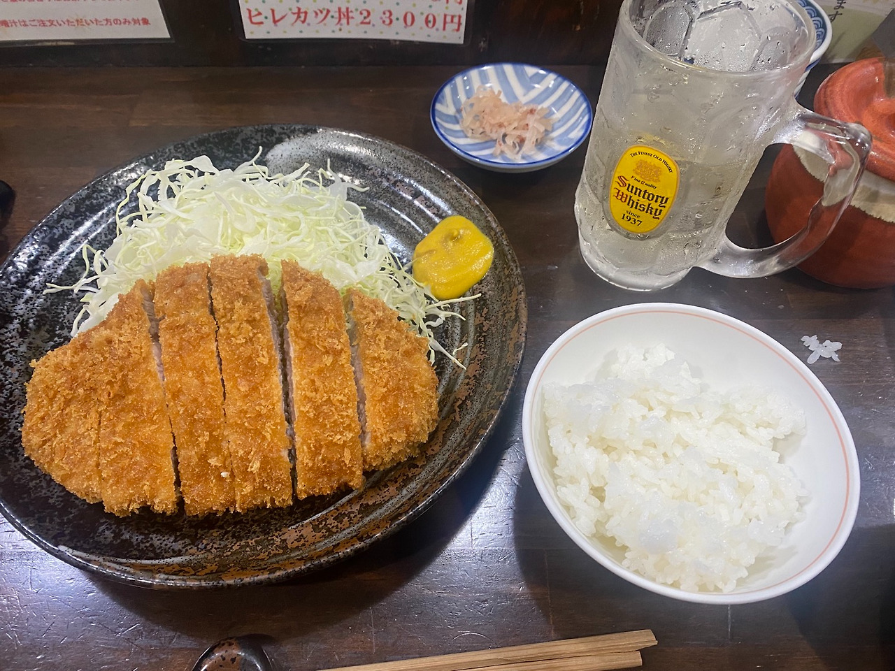 카츠집에 들어가서 메뉴를 보다가, 이번에도 도저히 이해가 되지 않아서 번역기를 사용했다. 번역기도 메뉴판의 신기한 필기체를 읽지 못했고, 우왕좌왕하던 찰나에 사장님이 눈치껏 영어메뉴판을 챙겨주었다. 그걸로 읽다가 등심카츠와 하이볼을 주문했다. 카츠를 조리하기도 전에 하이볼이 나왔는데, 생각한 맛과는 사뭇 달랐다. 내가 이제까지 먹은 것들은 대부분 토닉 워터를 넣어서 단 맛이 강했는데, 이 본토 하이볼은 그냥 탄산수를 넣었다. 그 말인 즉슨 단 맛은 없고 진정한 술의 향만이 느껴진다는 것이다. 하지만 이미 시켰으니 어떡하겠는가, 시원하게 마시고 이내 나온 카츠도 함께 곁들였다.