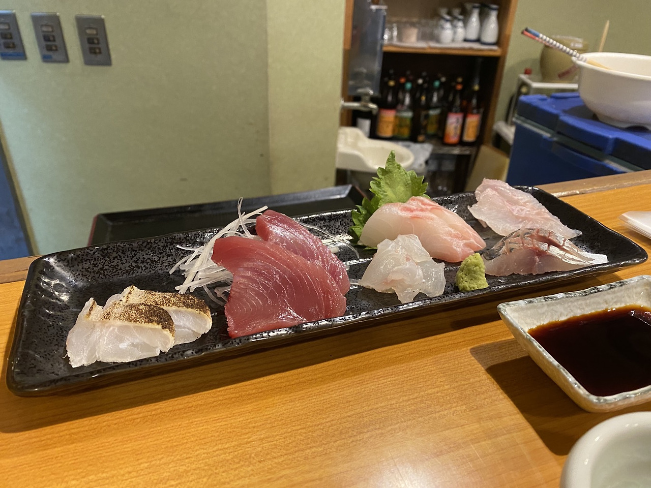 이내 내 앞에 놓인 것은 사시미 정식이었다. 약 다섯 종류의 생선 회가 내 앞에 나왔고, 밥을 먹어야 했던 나는 밥 한 공기도 주문했다. 옆 자리에 있는 사람은 밥 없이 회를 먹고, 술을 마시는데 나는 신기하게 회에다가 밥을 하나 시켜 같이 먹고 있었다. 우리나라로 따지면 뭐랄까... 청국장 보리밥집에 가서 나물과 밥을 안비비고 다 떠먹고 있는 정도의 어색함이려나?