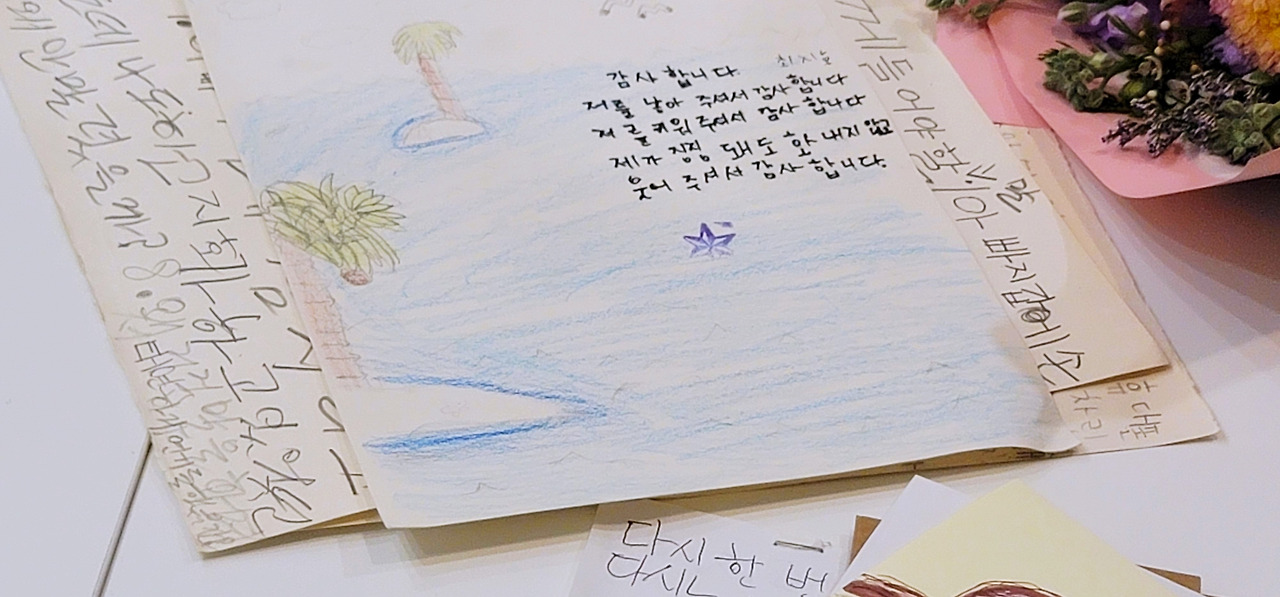 언니는 내 손가락을 이끈 프로필 사진 속 모습처럼 다정한 미소와 눈빛으로 우리를 맞이했다. 준비해 간 꽃다발과 엽서를 건네주었다. 감동하는 언니의 모습에 벌써 허벌눈물샘이 꿈틀댔다. 이를 악물었다. 인터뷰 시작 전부터 언니한테 꼴사나운 모습을 보여줄 순 없어...!