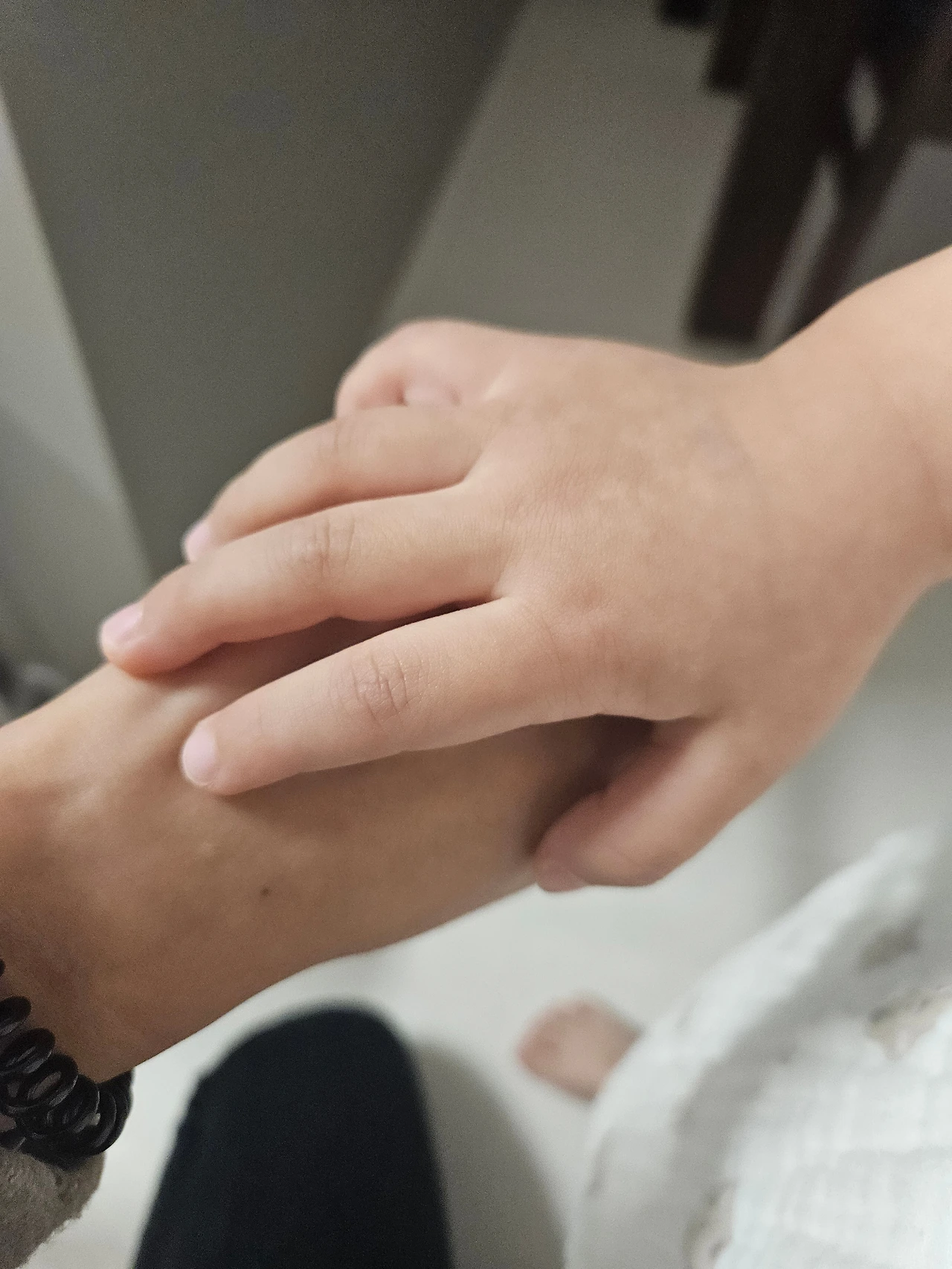 “로디, 엄마 손 아직 차가운데! 조금 더 오래 잡아줘.”