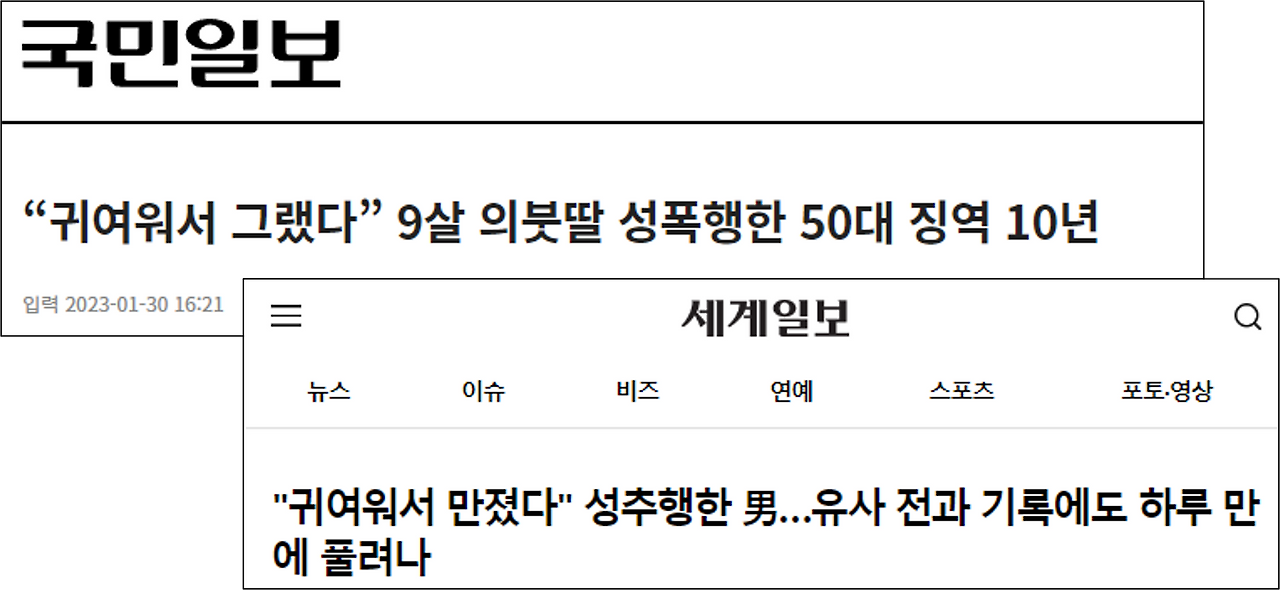 어린아이들을 성추행하는 파렴치한들의 단골멘트가 "술에 취했다" 내지는 "귀여워서 그랬다" 아니던가.