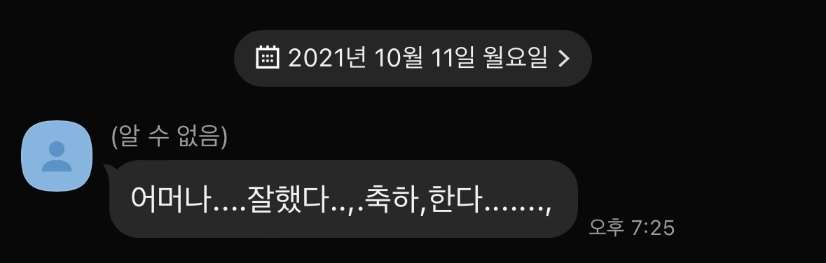 무슨 일에 우리 엄마는 이렇게 마음을 담아 축하를 해주었을까. 가족 단톡방에 누군가 좋은 일이 있어 올렸을 테고, 엄마는 거기에 이렇게 축하를 해주었겠지.