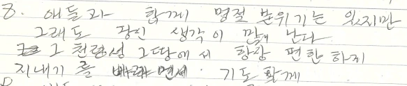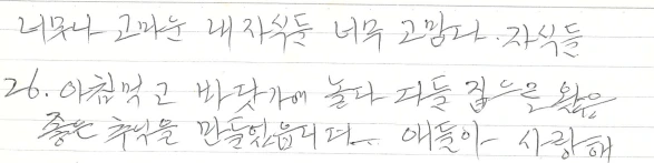 우리가 모여 왁자지껄 놀다가 엄마를 혼자 남겨두고 떠날 때면 걱정이 되었는데, 엄마가 남긴 글귀를 보니 가슴이 아팠다.