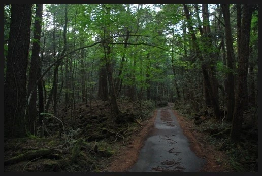 일본에는 수해(주카이), 그러니까 나무의 바다로 불리는 숲이 있다. 후지산 북서쪽, 864년 후지산 분화 당시 용암이 흘러내려 식은 자리에 만들어진 아오키가하라 숲은 약 3천 헥타르, 30km^2로 여의도의 10배 정도 되는 크기로 후지 하코네 이즈 국립공원의 일부이다. 이곳이 자살명소로 유명해진 것은 마츠모토 세이초의 소설 <파도의 탑>이 일으킨 베르테르 효과 때문이라는데, 이곳에 와서 자살을 하는 사람의 수가 월등하게 많다는 것은 사실이라고 한다. 이후 CNN에서는 세계 7대 괴기 장소로 선정되고, 유튜브 등에서 끊임없이 괴담이 소개되고 소비되는 과정에서 이 죽기 좋은 곳의 이미지로 굳어버렸다는 것이 정설. 나침반이 돈다거나 나갈 수 없다거나 하는 여러 도시전설은 다만 전설일 뿐, 울창한 숲 속에서 방향을 찾기 어렵고 소리가 먹히는 듯 느껴지는 것은 어느 숲이든 마찬가지이다. (용암에 포함된 철 성분이 영향을 미친다는 설도 있고, 구멍이 뚫린 화강암이 흡음판 역할을 한다는 설도 있지만, 증명된 사실은 아닌 듯하다.)