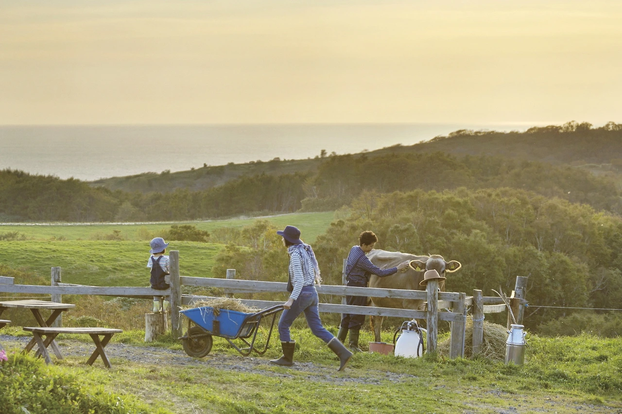홋카이도 섬의 남동쪽 끝 세타나에 바다가 보이는 시타라목장이 있다. 이 목장에는 소를 키우며 근처 치츠공방의 스승 오타니에게서 치즈 만드는 법을 배우는 아빠 와타루와 엄마 코토에, 그리고 오타니 스승의 부인인 사야코에게 그림을 배우러 다니는 딸 시오리가 살고 있다. 밥을 먹을 때마다 창 밖의 자연을 향해 감사인사를 잊지 않고, 이웃 친구네 밭에서 자연농법으로 재배한 채소와 텃밭의 허브가 들어간 식사를 하며 주말엔 파머스 마켓에 치즈와 유제품을 파는 와타루네 가족은 홋카이도의 아름다운 자연을 배경으로 평화롭고 느긋하게 '행복'이라는 이름이 달린 포스터의 그림처럼 살고 있다. 어느 날 유명한 셰프를 만나 자연 가까이에서 농사를 짓는 이웃들과 함께 하는 팝업 레스토랑을 신나게 준비하던 와타루의 일상은 스승 오타니의 죽음으로 흔들리기 시작한다.