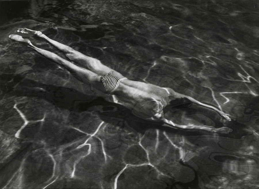아래의 사진은 케르테스의 초기작이다. 겉보기엔 단순하다. 물속에서 수영하는 사람을 찍은 사진이다. 그러나 물은 사진가에게 흥미로운 대상이다. 빛을 굴절시키고, 물결에 따라 이미지를 끊임없이 변형시키기 때문이다. 그 결과 수영하는 사람의 몸은 큐비즘적 형태로 뒤틀려 보인다. 몸통은 길게 늘어나 있고, 손과 발은 압축되어 있으며, 물결이 만든 선들은 추상적인 리듬을 만들어낸다. 사진은 정지되어 있지만 그 안엔 역동성이 살아 있다. 이 사진은 케르테스가 말한 ‘사진만의 언어’ 를 잘 보여준다.