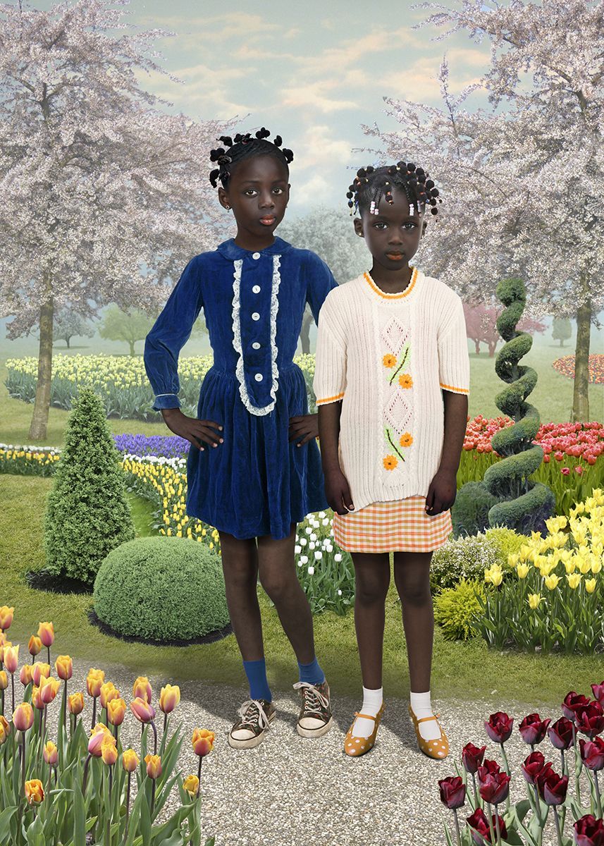 아래의 사진에서 배경은 풍성하고 아름다운 정원이다. 벚꽃이 만개하고 튤립이 가지런히 피어 있으며, 나무와 식물들은 질서 정연하게 배치되어 있다. 사진 속 두 아이는 깔끔한 옷차림을 하고 있고, 그 얼굴에서는 어떠한 고통의 흔적도 찾아볼 수 없다. 그러나 동시에 아이들은 무표정한 얼굴로 감정을 드러내지 않는다. 이 무감한 표정은 작품을 더욱 섬뜩하게 만든다. 사진 속 각각의 요소는 익숙하지만, 그 조합은 낯설다. 한 장면 안에서 봄과 여름의 기운이 동시에 느껴지며 자연의 시간적 흐름마저 무너진 듯하다. 관람자는 반 엠펠의 작품 앞에서 순수함과 인공성, 아름다움과 불안을 동시에 경험하게 된다.