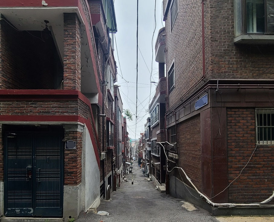 30여 년 전, 살고 있던 시골 동네가 신도시 개발지역으로 묶이면서 등 떠밀리듯 시내로 이사 나왔더랬다. 그때 우리 가족이 둥지를 틀었던 이 동네. 들로 산으로 뛰어놀던 선머슴 같던 내게 다닥다닥 붙은 집들은 꽤나 위압적이었는데, 뜀박질이라도 하면 붉은 벽돌들이 내 위로 와르르 쏟아져내릴까봐 옹송그리며 종종 걷던 내가 떠올랐다.