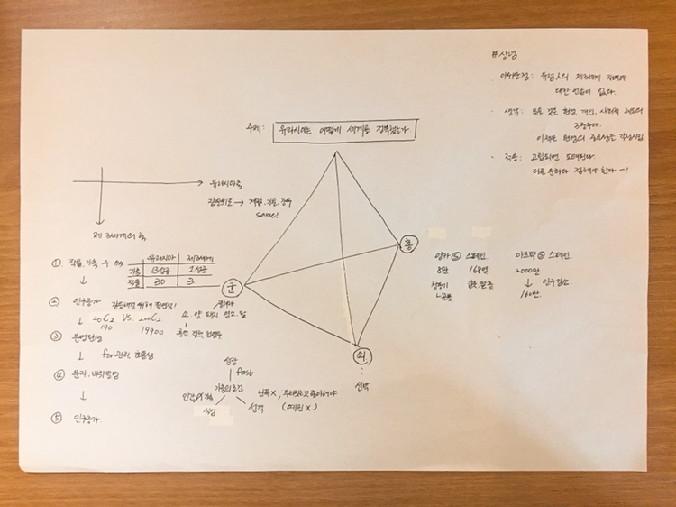 이제 A4를 한 장 더 꺼낸다. 마지막 단계다. 이 단계에서는 앞 선 A4에서 나열한 조각들을 정리해서 깔끔하게 한 장으로 정리한다.