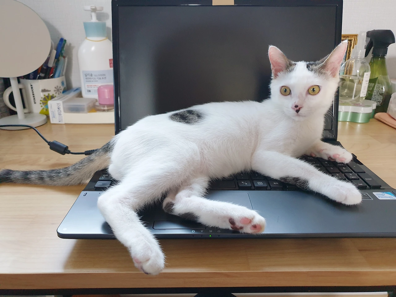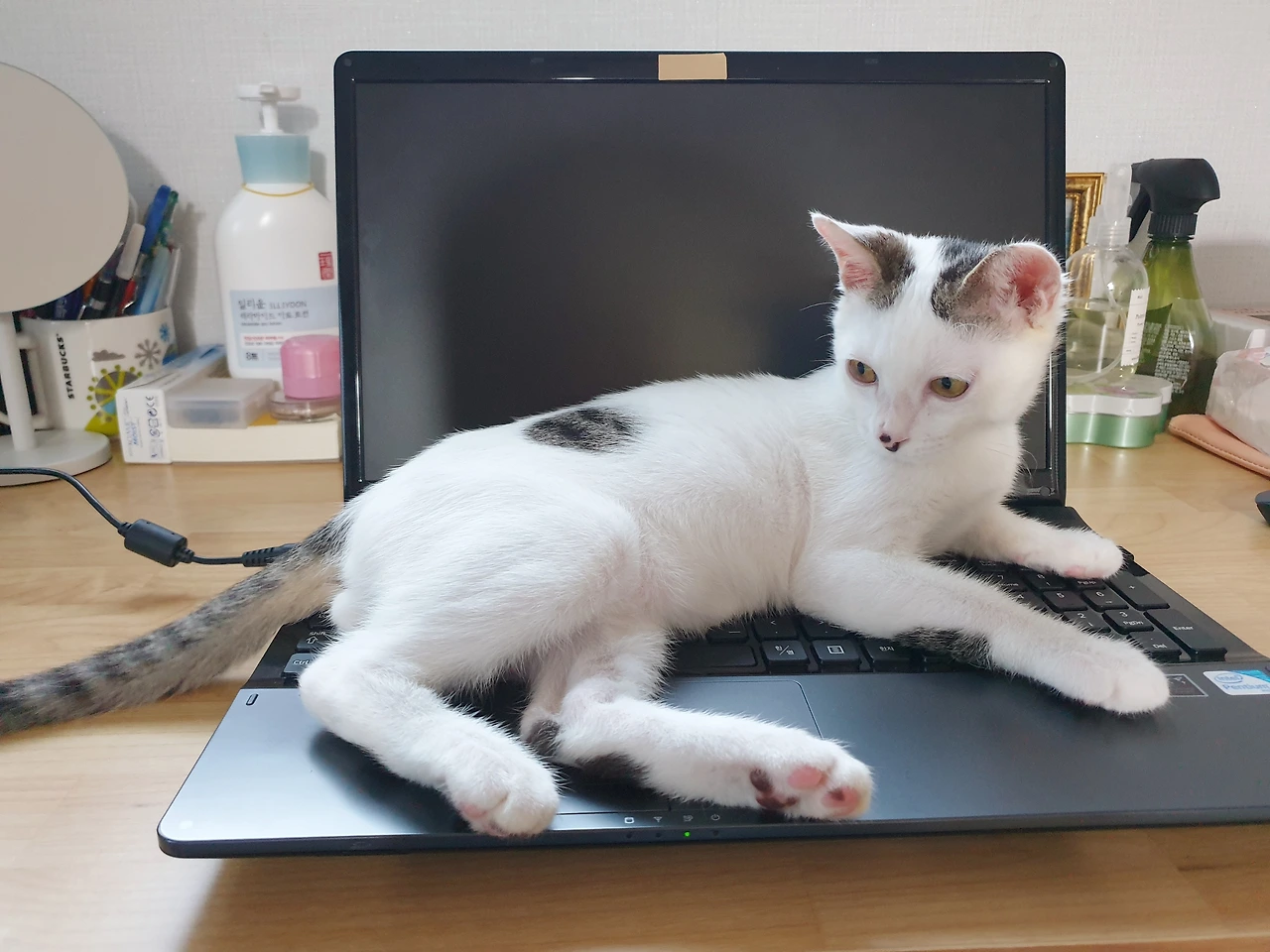 그리고 그날 밤. 자다가 여명이 우는 소리에 깼더니 정말 침대 헤드에 서서 우리 쪽을 보면서 울고 있었다. 시간은 동생 말대로 2시 반. 괜히 소름이 끼쳐서 불을 켜고 울고 있는 여명이를 불러 내려 한바탕 놀아줬다. 놀다 지친 여명이는 꿀잠을 자기 시작했지만 우리는 뜬눈으로 밤을 새웠다. 고양이 눈에는 사람 눈에 안 보이는 뭔가가 보이는 걸까. 고양이들이 먼지를 잘 본다는 둥, 그냥 놀아달라고 저러는 거 같다는 둥 변명 아닌 변명을 하는 나조차도 여명이가 뭔가를 보고 저러는 건가 싶었다. 갑자기 동생 집에서는 공포영화가 시작되었고, 다행히 내가 재택근무를 시작하면서 겁에 질린 동생과 며칠 동안 같이 지낼 수 있었다.