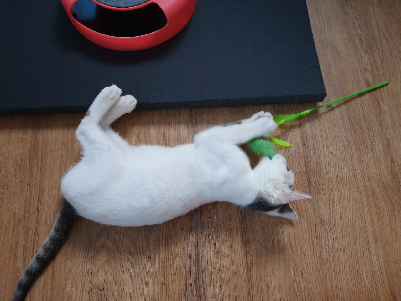 침대를 들어내기 전에 매트리스만 들어냈는데도, 지난 며칠 동안 여명이가 왜 그렇게 울었는지 알 수 있었다. 매트리스 아래에는 여명이가 좋아하는 장난감 세 손가락 안에 드는 강아지풀이 깔려있었다. 도대체 어떻게 된 건지는 모르겠지만, 강아지풀을 가지고 놀다가 여명이는 자기가 꺼낼 수 없는 곳에 그걸 밀어 넣은 것 같았다. 꺼내 보려고 발을 넣을수록 더 깊은 곳으로 들어갔고, 결국 눈에 안 보이는 곳까지 들어가 버렸겠지. 누나들이 놀아주는 저녁 시간에는 잊고 있다가, 놀아주는 사람 없는 새벽이 되면 그제야 자기가 밀어 넣은 장난감 생각이 난 모양이었다.