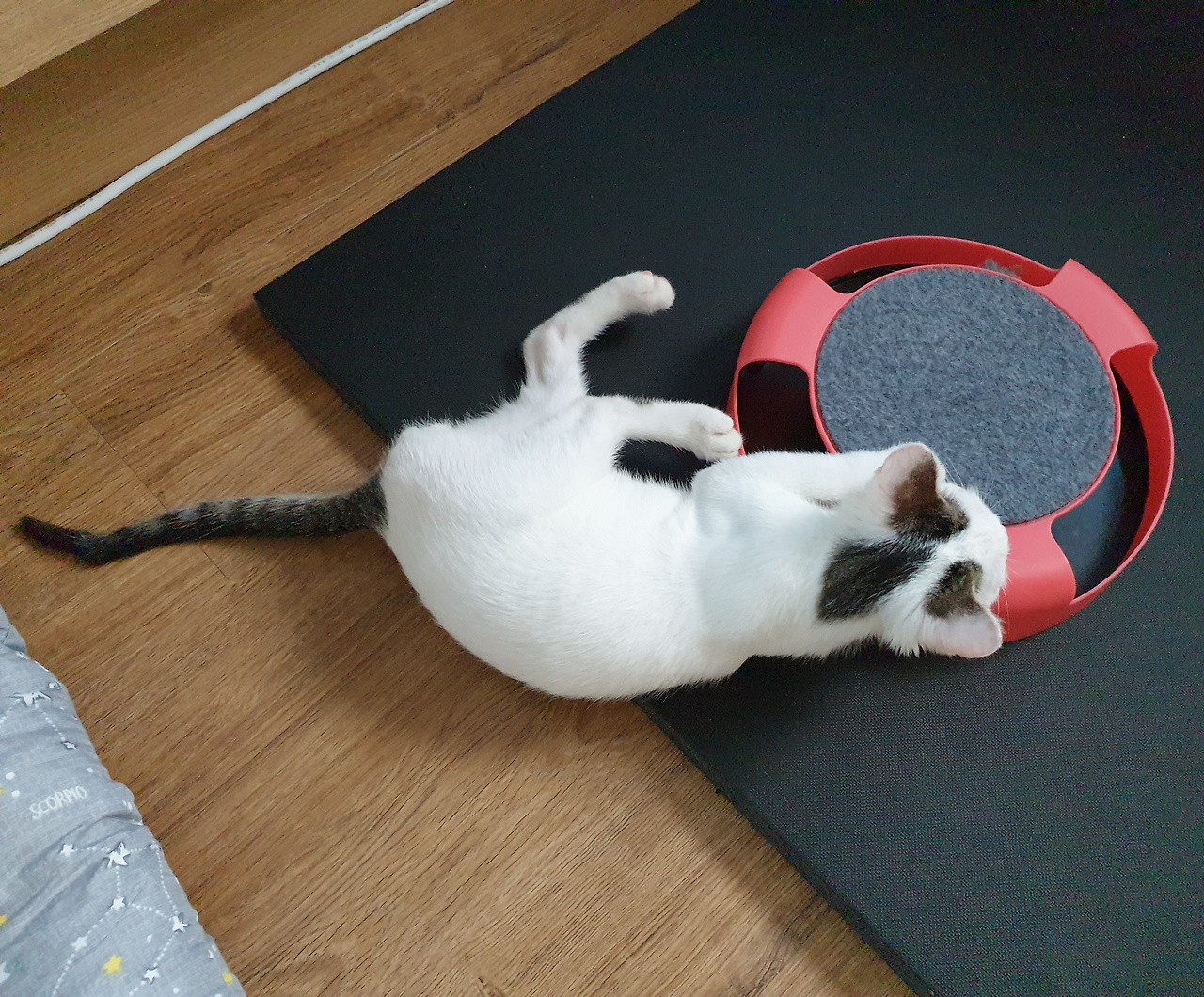 여명이가 태어나서 처음으로 가져봤을 장난감인 빨간 쥐돌이통은 여전히 부동의 1위다. 쥐돌이는 이제 꼬리도 없고 털도 많이 빠져서, 넋이라도 있고 없고 상태다. 일단 쥐돌이의 형체가 조금이라도 남아있을 때 버리고 새 걸로 사줄까 싶기도 했는데, 왠지 여명이가 좋아하는 쥐돌이는 지금 그 쥐돌이인 것 같아서 그럴 수가 없었다. 그러고 보니 여명이가 좋아하는 장난감(이라고 할 수 있을지 모를 물건들)에는 같이 놀아줄 누나가 필요하다는 공통점이 있다. 이쯤되면 여명이는 장난감을 좋아하는 게 아니라 나를 좋아하는 거라고 흡족한 결론을 냈다. 지금처럼 손 많이 가는 고양이여도 괜찮으니까 건강하게만 잘 자라면 좋겠다.