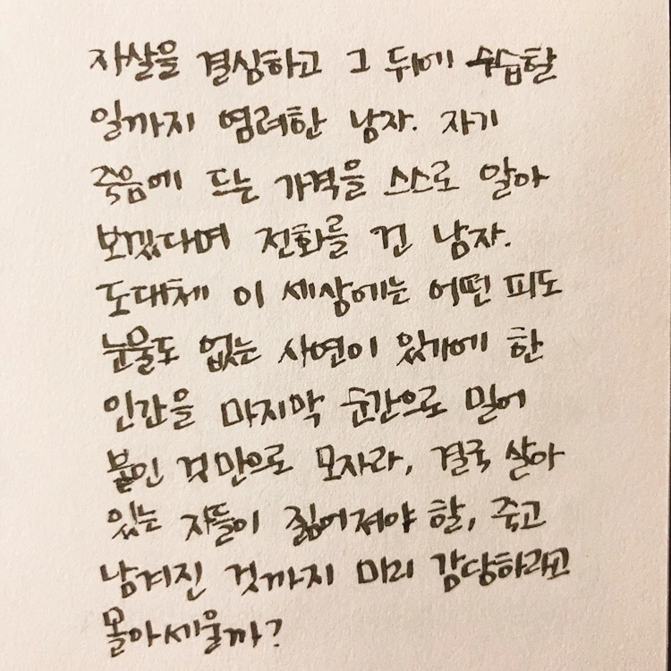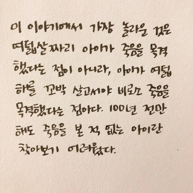 사회생활을 시작한 20대 초반부터 경조사는 끊임없이 찾아왔다. 처음에는 내가 참석해야 할 경조사 중 결혼식의 비율이 압도적으로 높았는데, 어느 순간 결혼식과 장례식의 비율이 비슷해졌다. 적어도 한두 달 전에 소식을 듣고 옷이든 마음이든(!) 준비를 할 수 있는 결혼식과 달리 갑자기 찾아오는 장례식은 아무것도 미리 준비할 수 없었다. 아직 우리나라에서 합법적으로 죽는 날을 스스로 정할 수 있는 사람은 없기에 장례식은 슬픔의 정도만 다를 뿐 항상 갑작스러웠다. 고인을 생각할 때의 슬픔, 남은 사람들에 대한 안쓰러움 등으로 마음이 잔뜩 무거워서 장례식장에서 먹는 밥은 항상 얹혔다.