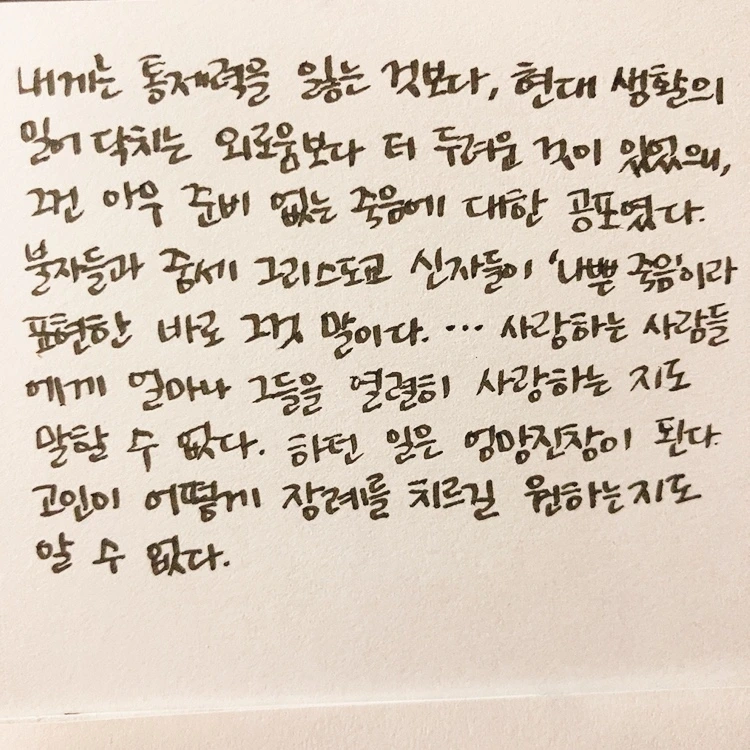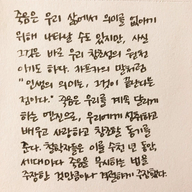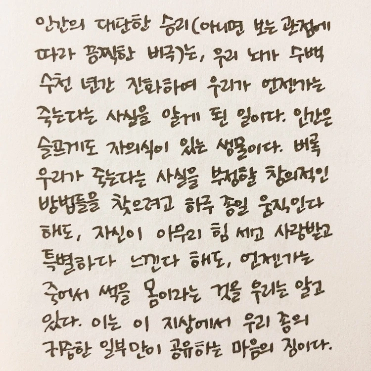 한 해를 마무리하는 책으로 적당한지는 모르겠지만, 나는 연말에 이 책들을 만나서 다행이라고 생각했다. 한정된 삶이기 때문에 더 소중하게 써야 한다는 걸 머리로는 알지만, 생각만큼 시간을 귀하게 쓰기가 쉽지 않다. 책을 읽으면서 죽음에 너무 매몰될 필요는 없지만, 언제든 닥칠 수 있는 일이라는 걸 인지하면서 매시간을 후회 없이 알차게 써야겠다고 생각했다. 그리고 내가 죽은 이후의 일들에 대해서도 가끔 생각하고 그걸 위해서 항상 주변을 너무 너저분하지 않게 틈틈이 정리하기로 했다. 몇 시간 뒤면 시작될 2021년에는 시간을 소중하게 쓰면서 더 많은 책을 읽고, 더 많이 웃고, 더 많이 행복할 수 있으면 좋겠다.