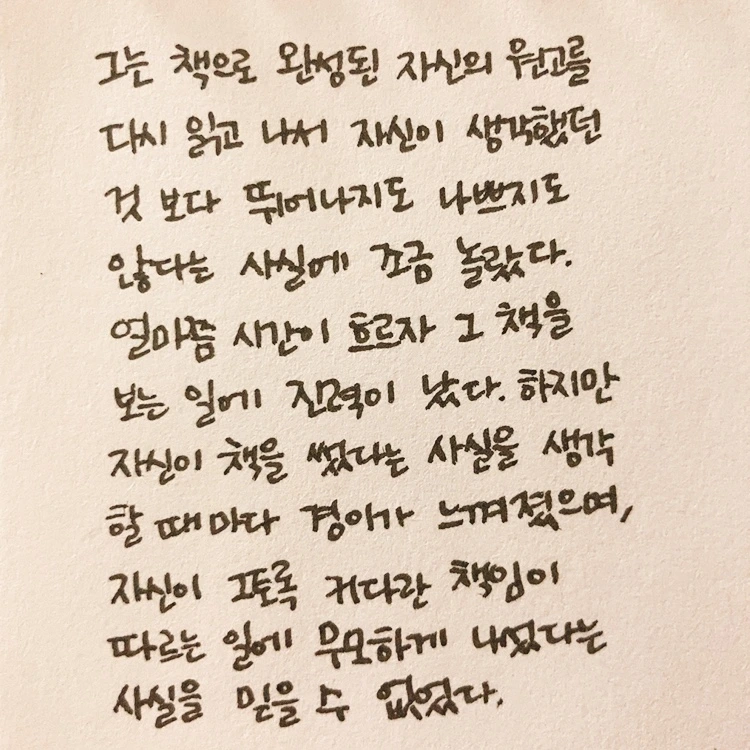 완성하고 나서 내가 쓴 글을 다시 읽어 보면 생각했던 것보다 뛰어나지도 나쁘지도 않다는 말이 특히 와닿았다. 책을 낸 건 아니지만, 여명이의 이야기로 브런치북을 엮고 나서 나는 스토너가 그랬던 것처럼 자주, 진력이 날 정도로 읽었다. 언젠가 내 이름으로 책이 나온다면 나도 스토너와 비슷한 감정을 가지게 되겠지.