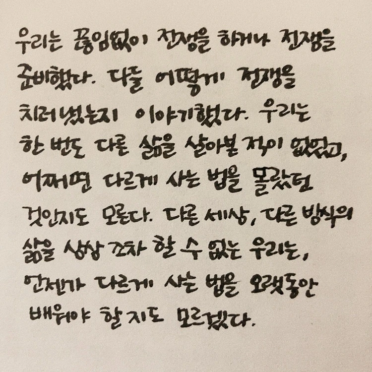전쟁터만큼 죽음과 가까운 곳도 드물지 않을까. 그런데 그 전쟁터에서 운 좋게 살아남은 사람들이 살아있는 내내 전쟁의 기억으로 고통받는 걸 책에서 읽고 나니까, 어느 쪽이 더 나은지를 모르게 되었다. 죽은 사람에게도 산 사람에게도 전쟁은 너무 끔찍한 일이었다. 그런 전쟁의 역사들이 많이 쌓였는데도, 2022년에 전쟁이 시작되었다는 걸 믿을 수가 없다.