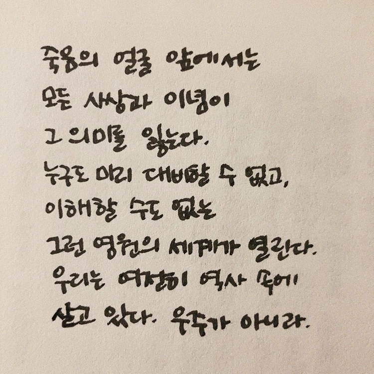 이 책이 있다는 건 출간 당시에 이미 알고 있었는데, 책이 두껍기도 했고 왠지 선뜻 손이 가지 않아서 읽으려고 하지 않았었다. 그러다가 이 책의 편집자이기도 한 이연실 작가님의 책을 읽다가 읽고 싶다는 마음이 들어서 장바구니에 담았다. 스베틀라나 알렉시예비치 작가님이 한국을 방문했을 때 모두가 기념사진을 찍는 광화문에서, 세월호의 아픔이 남아있는 곳에서는 찍을 수 없다고 거절했다는 에피소드를 읽었을 때 마음이 움직였다. 다른 사람의 상실이나 아픔에 공감을 깊이 하는 사람이 전쟁을 겪은 사람들의 이야기를 어떻게 엮어냈을지 궁금했다.