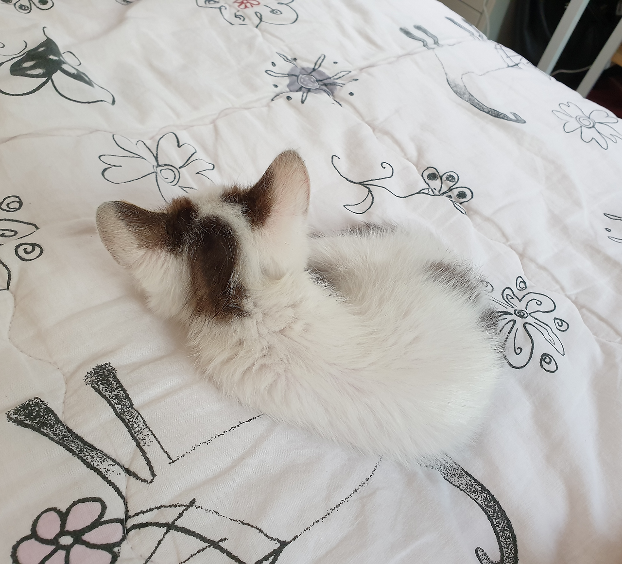 그때 동생이 나섰다. 고양이가 정말 조그맣고 귀여우며, 지금은 아파서 얼굴이 좀 안돼 보이지만 다 나으면 정말 예뻐질 것 같다고. 그렇게 예쁘고 귀여운 고양이는 금방 입양을 갈 수 있다고 편을 들어줬다. 이때다 싶어 미리 찍어둔 여명이의 숨 막히는 냥통수 사진을 보여주려고 하다가 나는 그만 정말 숨이 턱 막히는 클로즈업 사진을 보여주고 말았다. 오늘 도대체 왜 이렇게 순서대로 되는 일이 없는가.