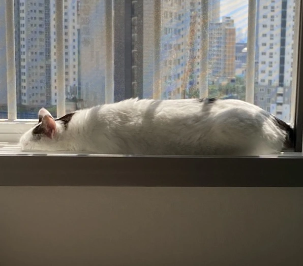 이사갈 집을 어렵게 구하고, 여러 복잡한 준비 과정을 거쳐서, 이사를 완료하는 건 사람의 문제다. 고양이의 문제는 새 집에 도착한 그 순간부터 시작된다. 영역 동물인 고양이가 자기 의지와는 상관없이 낯선 냄새가 가득한 낯선 영역에 적응을 해야 하는 것이다. 고양이가 사람의 말을 이해한다면 그 과정이 조금은 수월하겠지만 그럴 수 없으니, 나는 고양이를 조금 진정시켜 준다는 간식을 여명이에게 바치며 천천히라도 좋으니 무사히 적응해주기를 부탁했다. 다행히 여명이는 생각했던 것보다 더 빠르게 적응했다. 내가 그렇듯이 여명이도 새로운 공간이 마음에 드는 것 같았다. 특히 여명이가 마음에 들어하는 곳은 창문이었다. 옆 건물 벽이 바로 보이던 작은 창문에서 이제는 제법 많은 것이 보이는 큰 창문으로 바뀌었더니 하루의 절반 이상은 그 창문 근처에서 시간을 보낸다. 안전을 위해 방충망도 안전 방충망으로 바꿔서 더 마음이 놓인다. 창문이 고양이한테는 TV라던데 인치를 크게 늘려준 기분이라서 뿌듯했다.