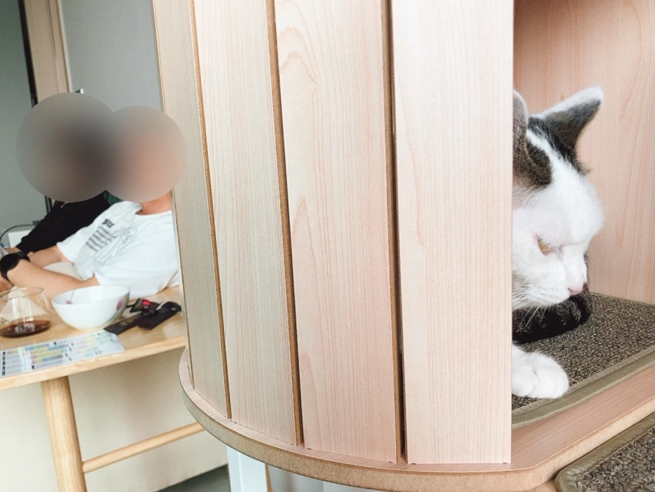 집들이를 하러 온 친구들이 공통적으로 하는 말이 있었다. 여명이 캣타워가 정말 좋아 보인다는 말과 건물주에 숨숨집 부자인 여명이가 부럽다는 말. 말을 듣고 둘러보니 이미 여명이는 숨숨집이 두 개 있었고, 그 외에도 숨을 공간과 스크래처가 여기저기 많이 있었다. 친구들이 집사는 무주택인데 여명이는 집이 두 채라며 웃었다. 예전 집보다 넓어지긴 했지만, 아직 공간이 아주 여유 있지는 않아서 여명이 짐을 어떻게 배치해야 할지 고민이 많았다. 코너에 공간이 조금만 더 있으면 캣폴도 설치할 수 있을 텐데, 베란다 폭이 조금만 더 넓어도 캣타워 작은 게 하나 더 들어갈 텐데 하며 원룸에서는 해본 적 없던 고민을 이어갔다. 사람의 욕심은 끝이 없다더니 이사를 막 왔을 때는 거실과 방으로 공간 분리가 되는 것에 감동했는데, 이제 방이 하나 더 있으면 좋겠다는 생각이 든다. 내가 이렇게 끝도 없는 욕심을 부리고 있는 사이, 여명이는 이전 집에서 그랬듯이 적응을 마치고 만족스러운 하루하루를 보내고 있다.